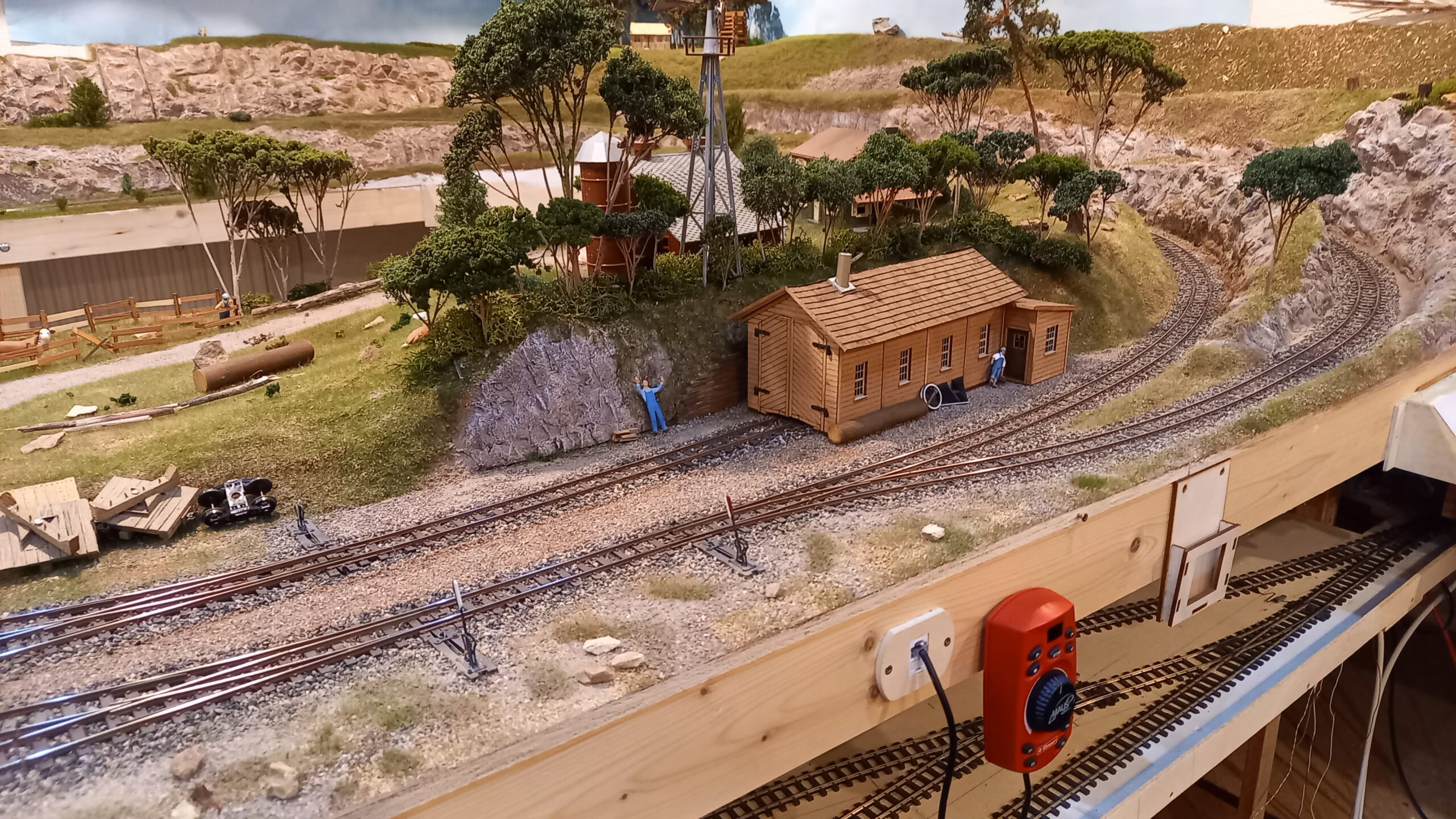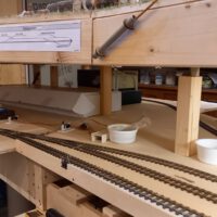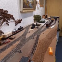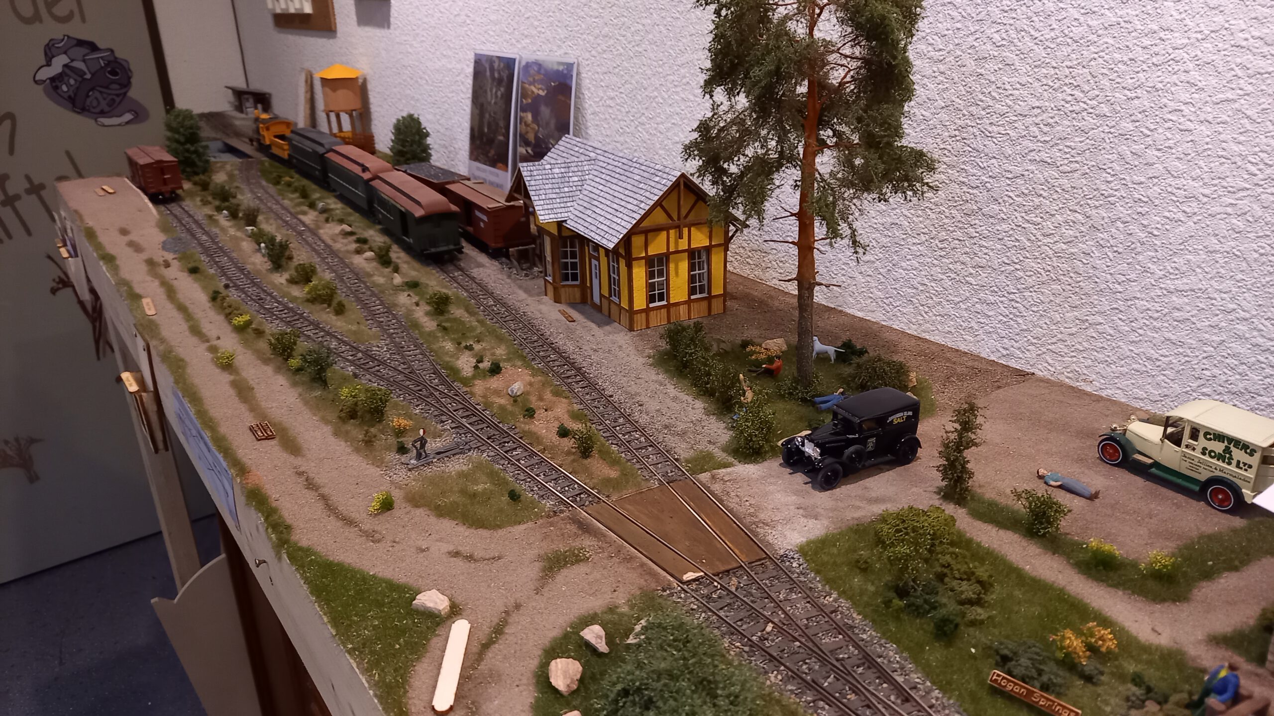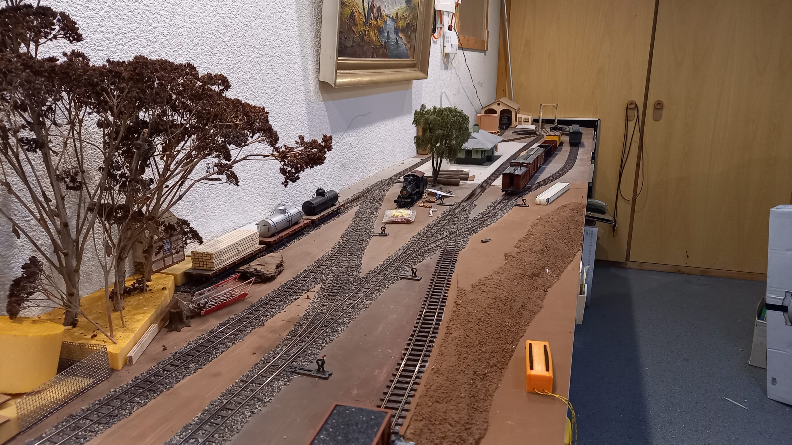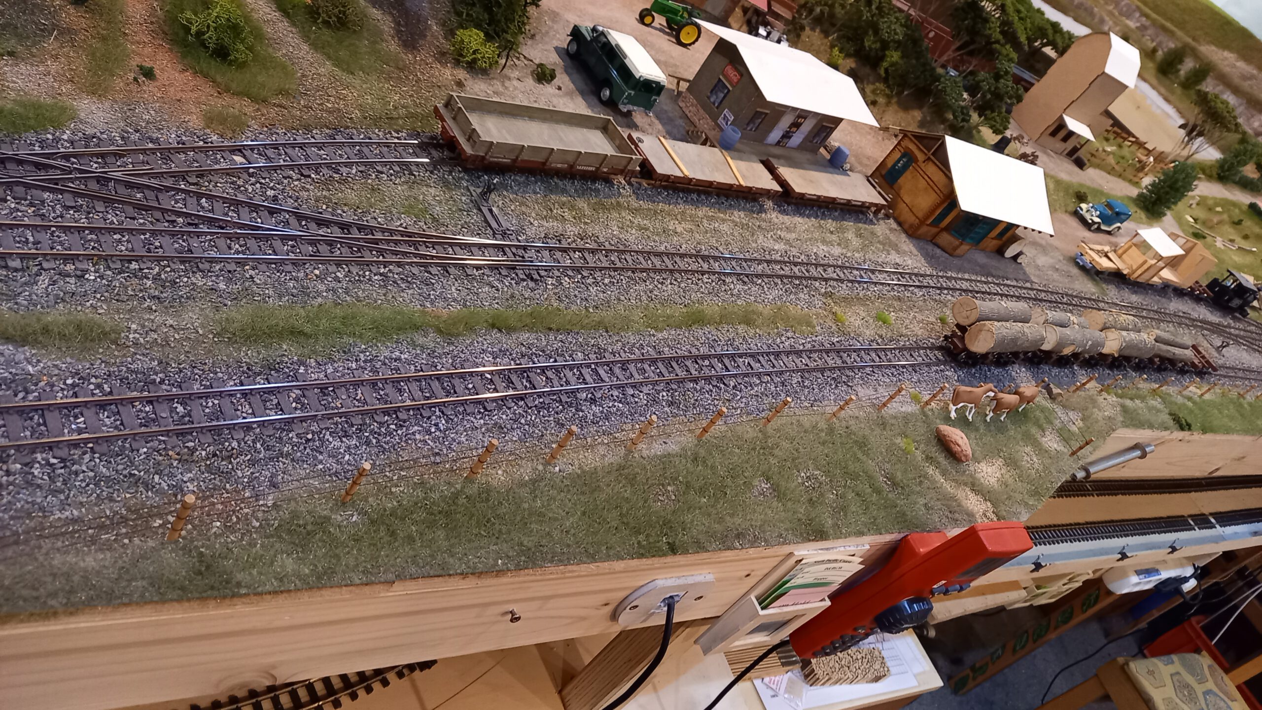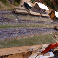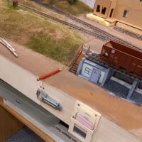 Die Züge aus dem Schattenbahnhof kommen hieran und müssen Kopf machen. Dies ist auch eine Gelegenheit für Lokwechsel- Im Spielbetrieb hatten wir häufig die kleine Porter hier als „Yard Goat“ eingesetzt, die das Rangieren und Zustellen der Wagen vor Ort übernimmt, damit die Streckenloks zeitnah wieder mit ihren Zügen weiter fahren konnten.