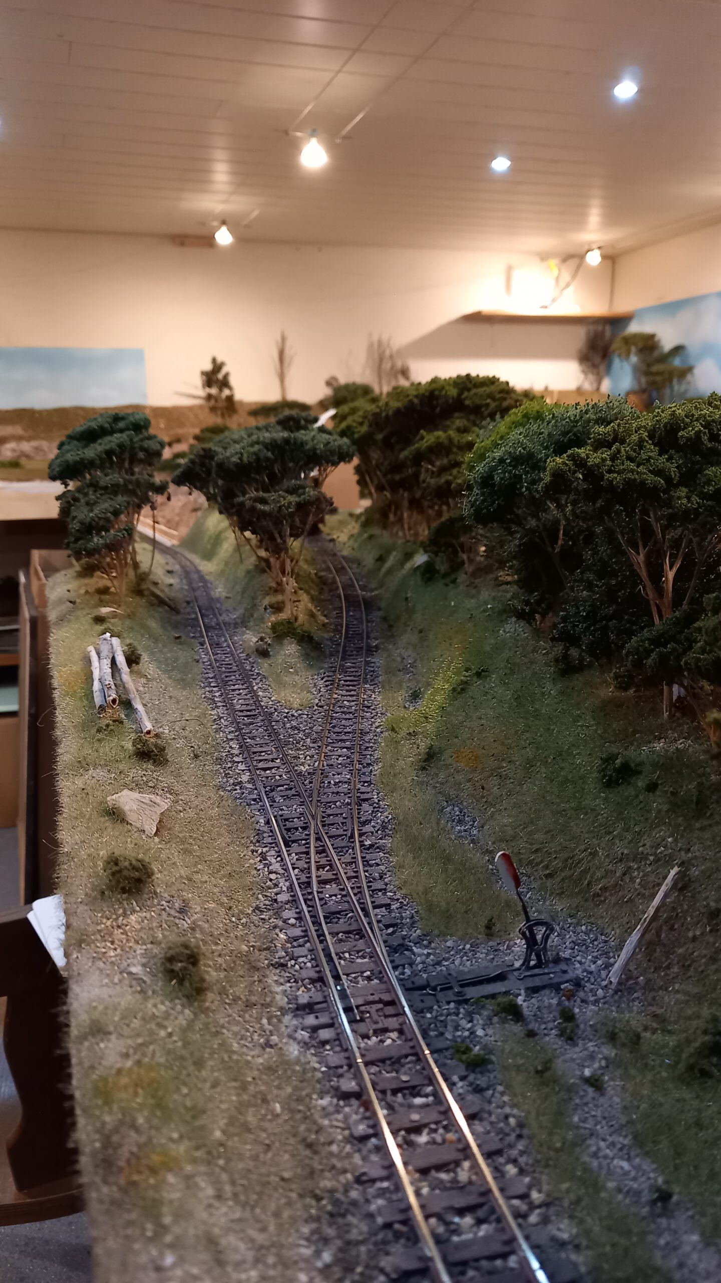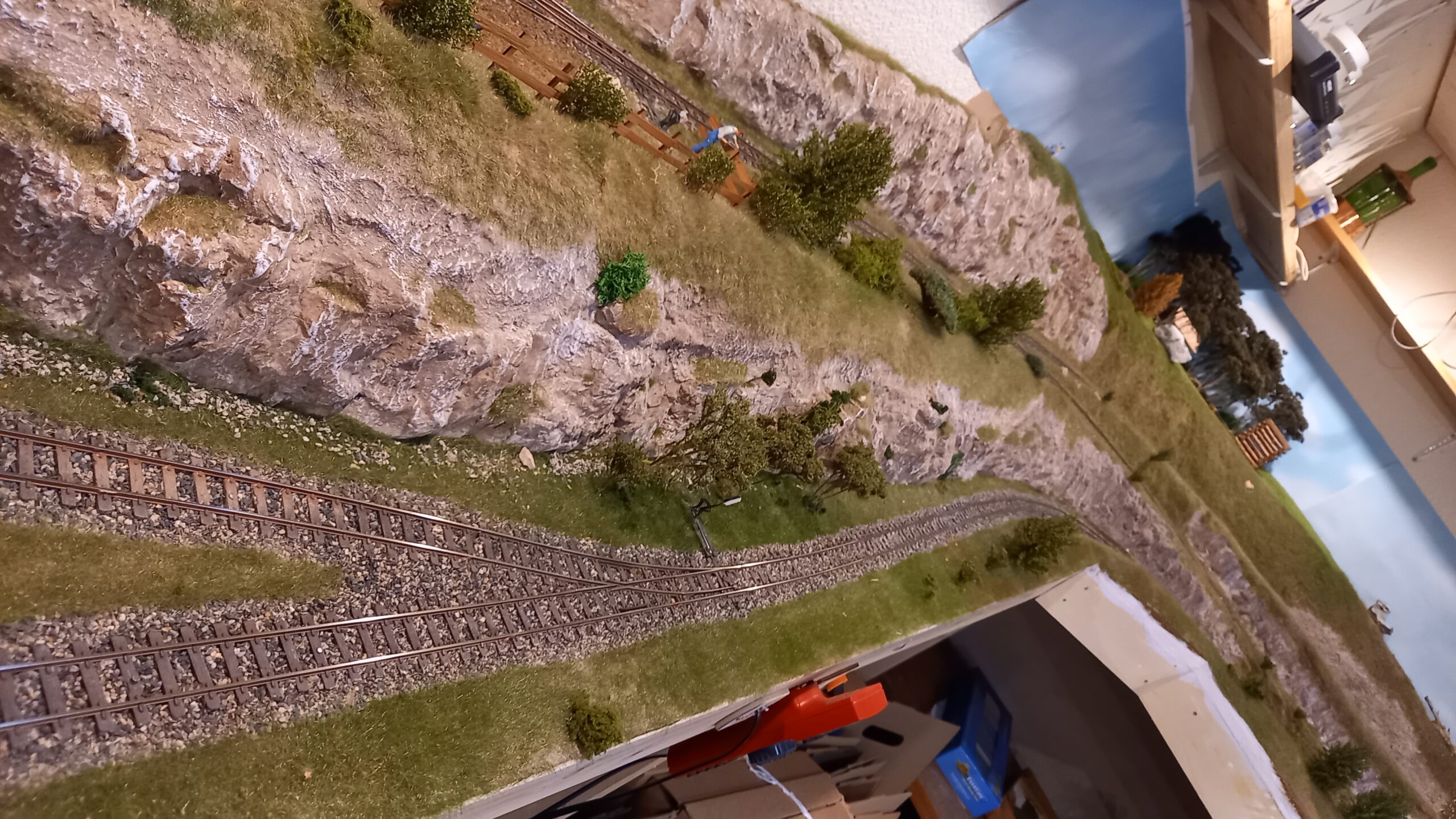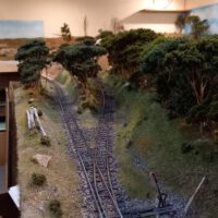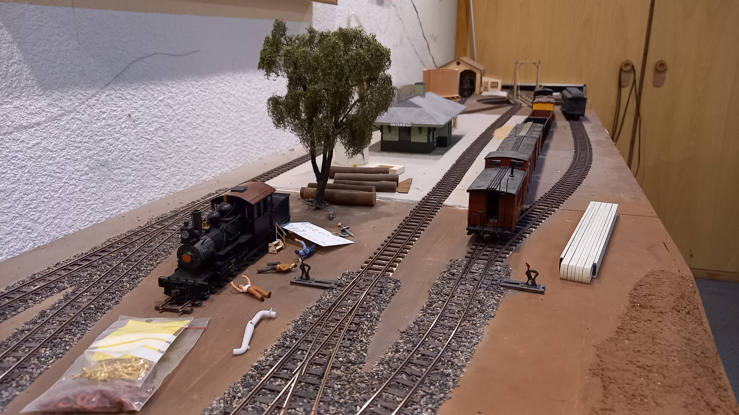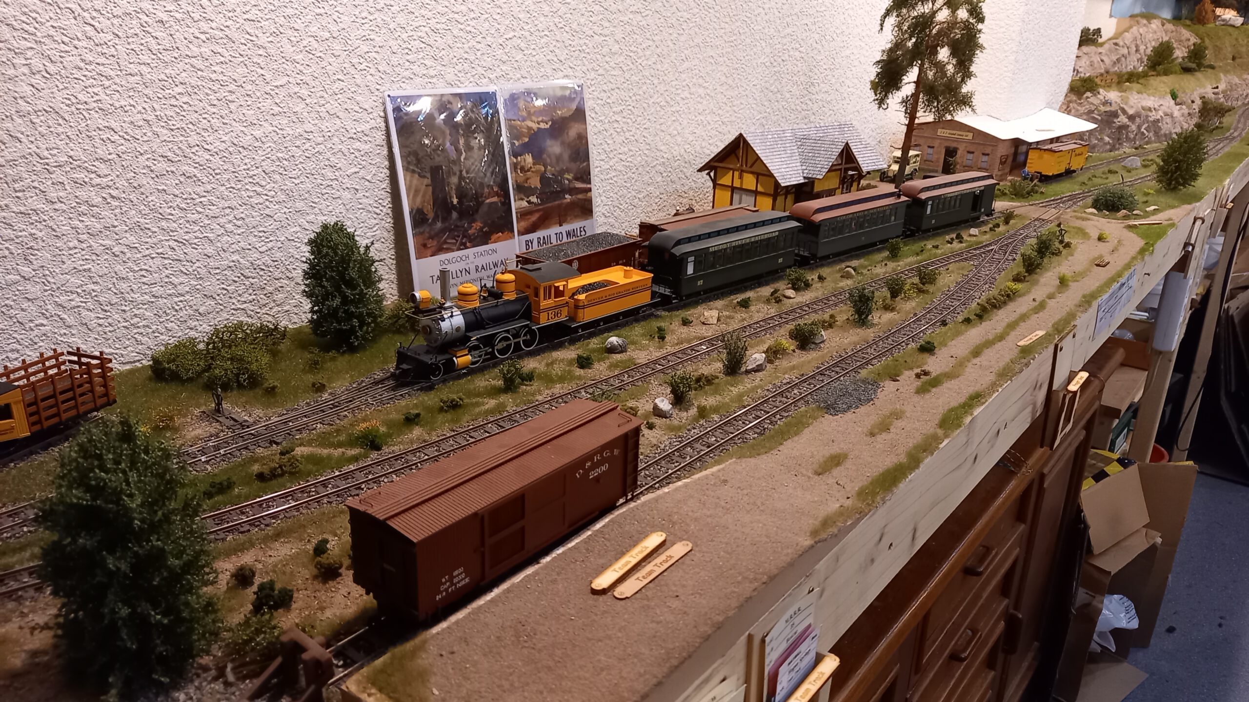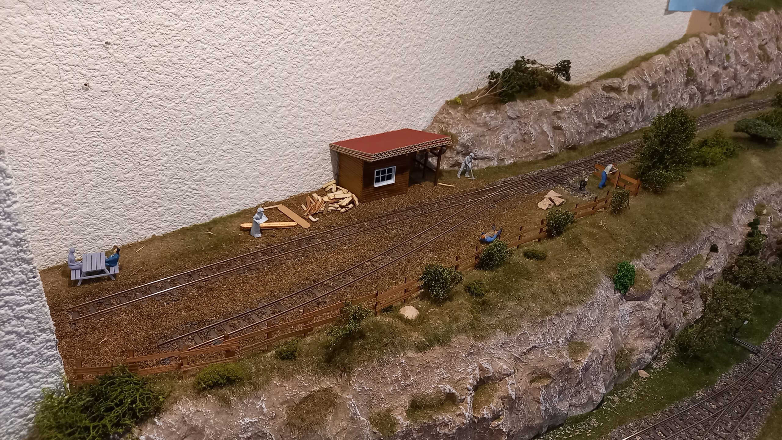 Die Züge aus dem Schattenbahnhof kommen hieran und müssen Kopf machen. Dies ist auch eine Gelegenheit für Lokwechsel- Im Spielbetrieb hatten wir häufig die kleine Porter hier als „Yard Goat“ eingesetzt, die das Rangieren und Zustellen der Wagen vor Ort übernimmt, damit die Streckenloks zeitnah wieder mit ihren Zügen weiter fahren konnten.