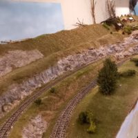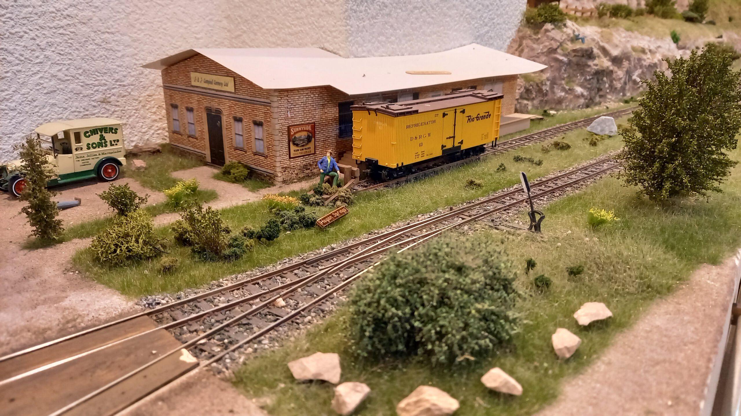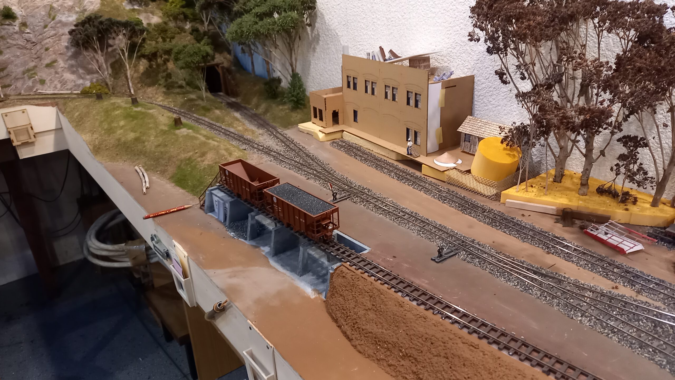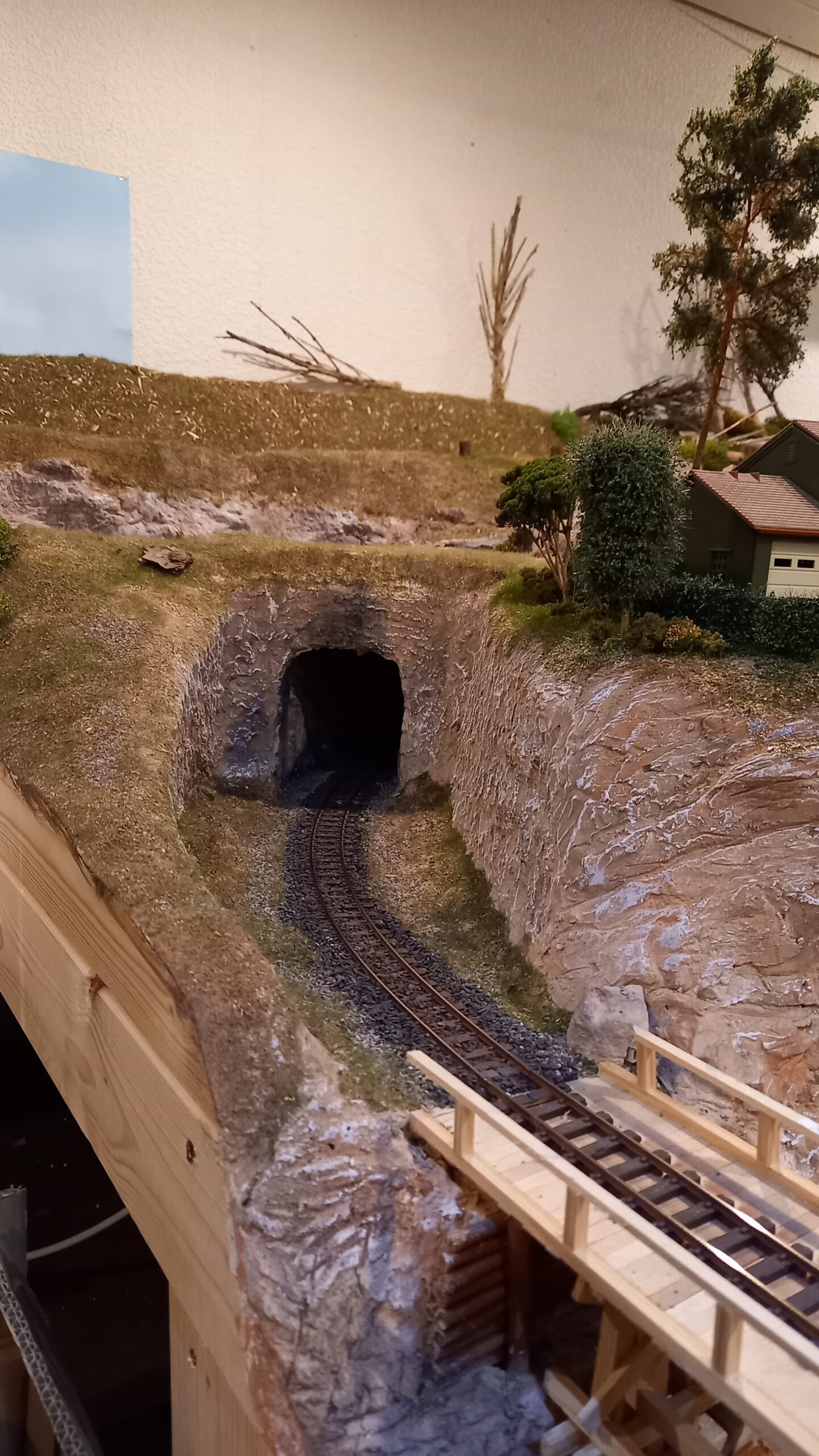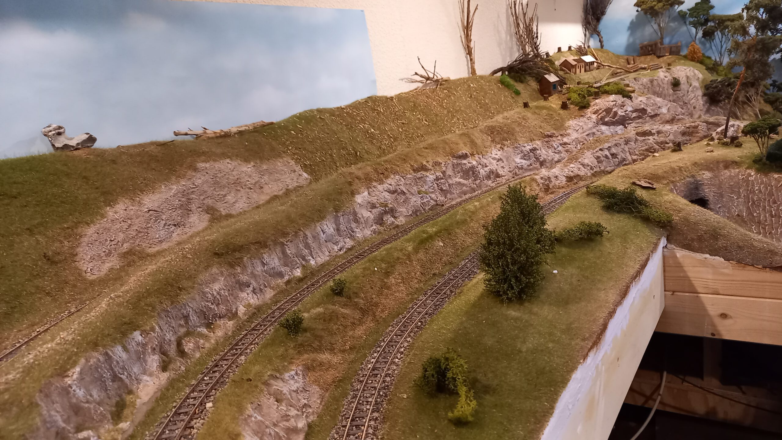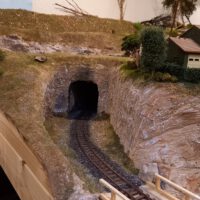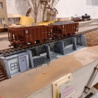 Die Züge aus dem Schattenbahnhof kommen hieran und müssen Kopf machen. Dies ist auch eine Gelegenheit für Lokwechsel- Im Spielbetrieb hatten wir häufig die kleine Porter hier als „Yard Goat“ eingesetzt, die das Rangieren und Zustellen der Wagen vor Ort übernimmt, damit die Streckenloks zeitnah wieder mit ihren Zügen weiter fahren konnten.