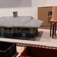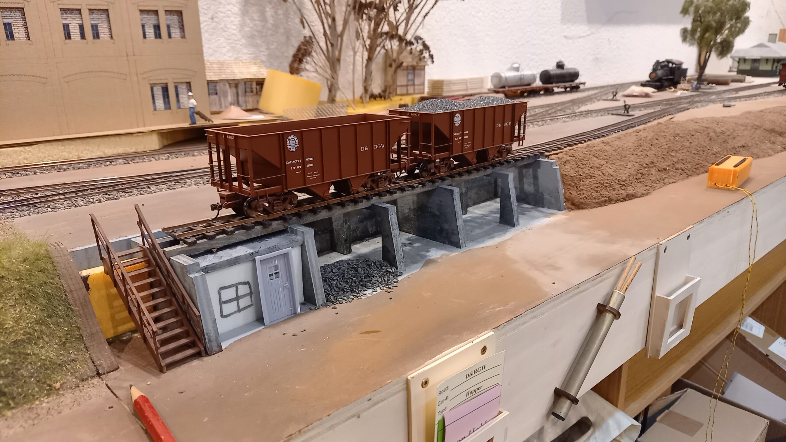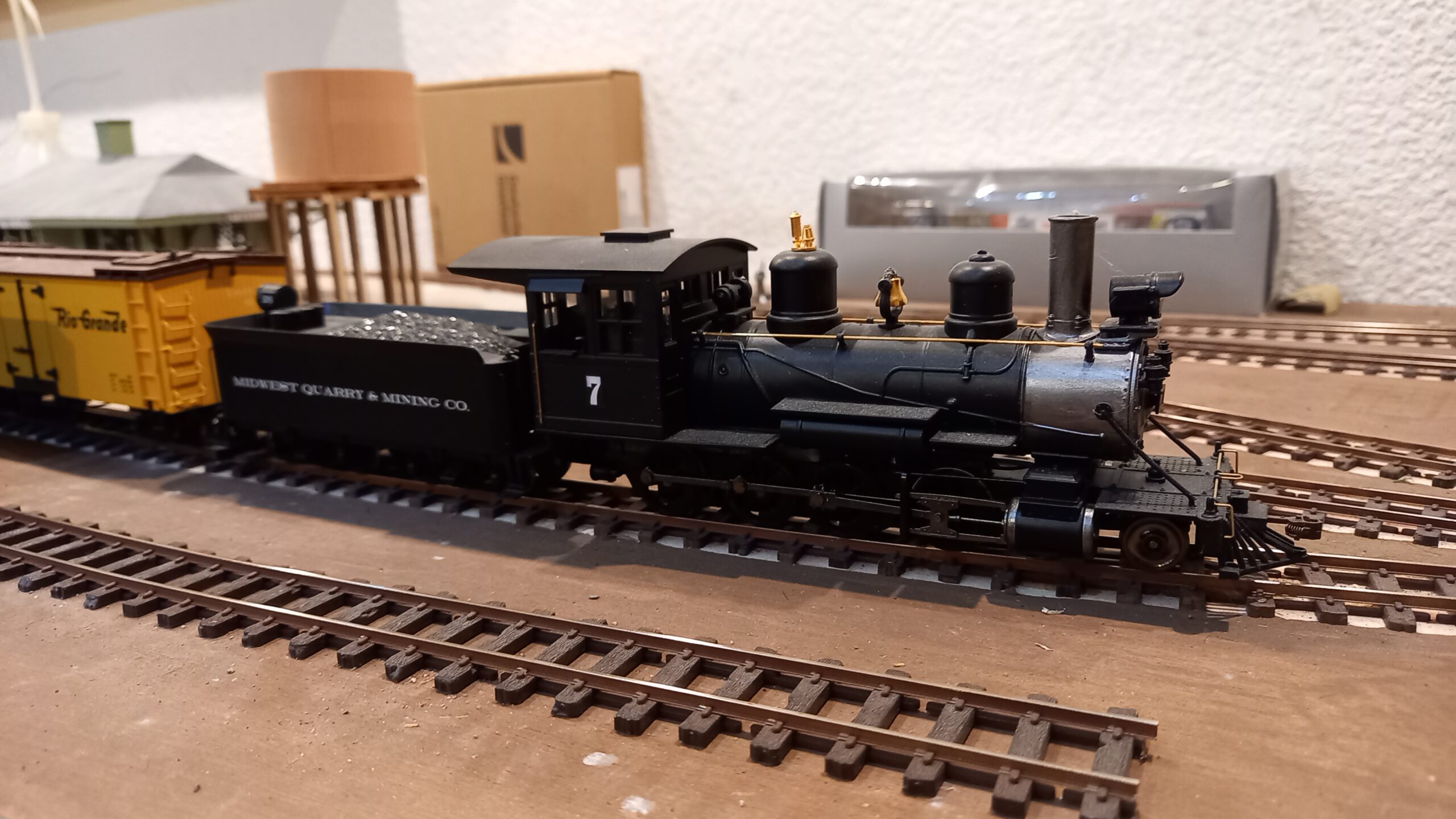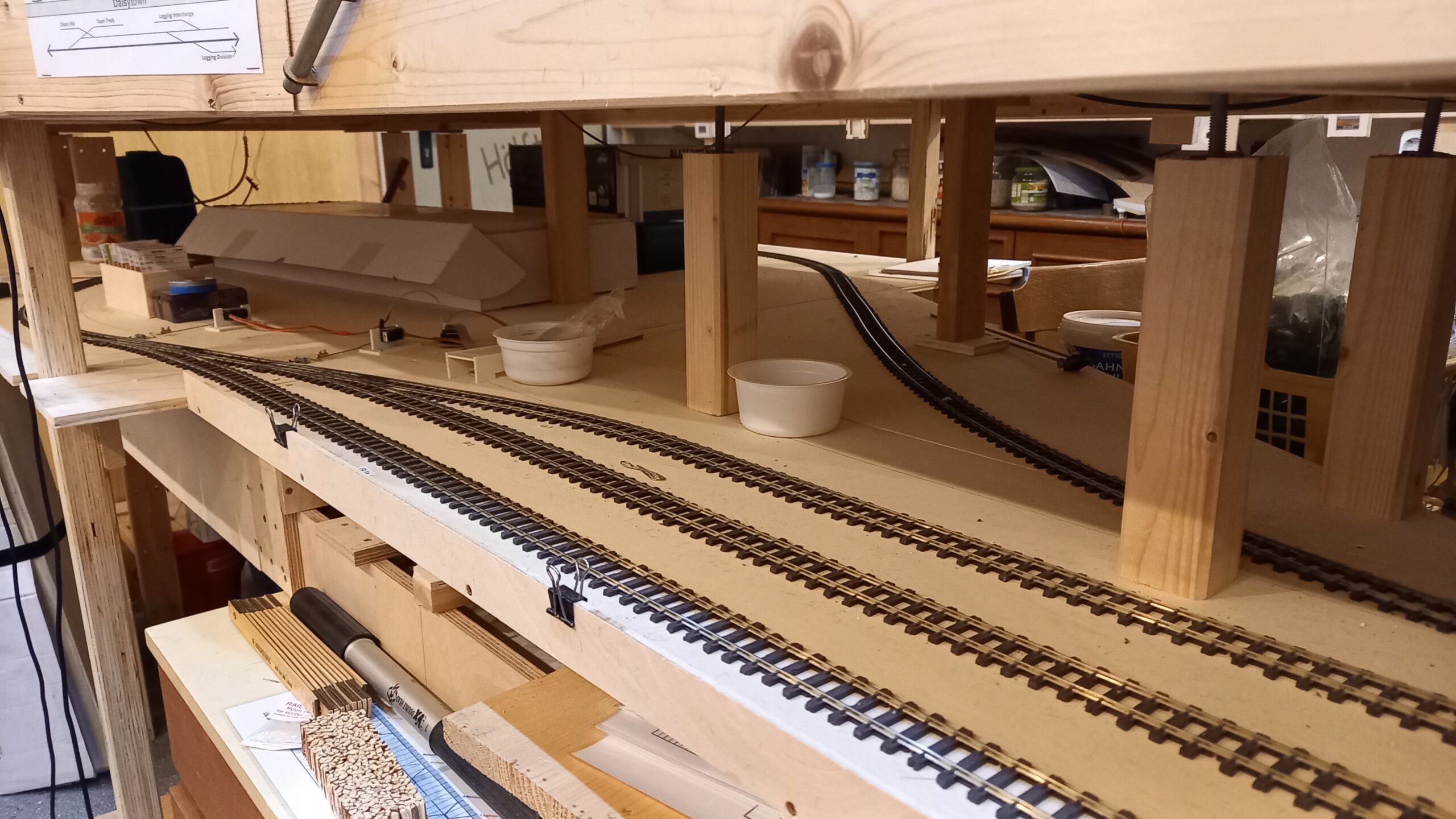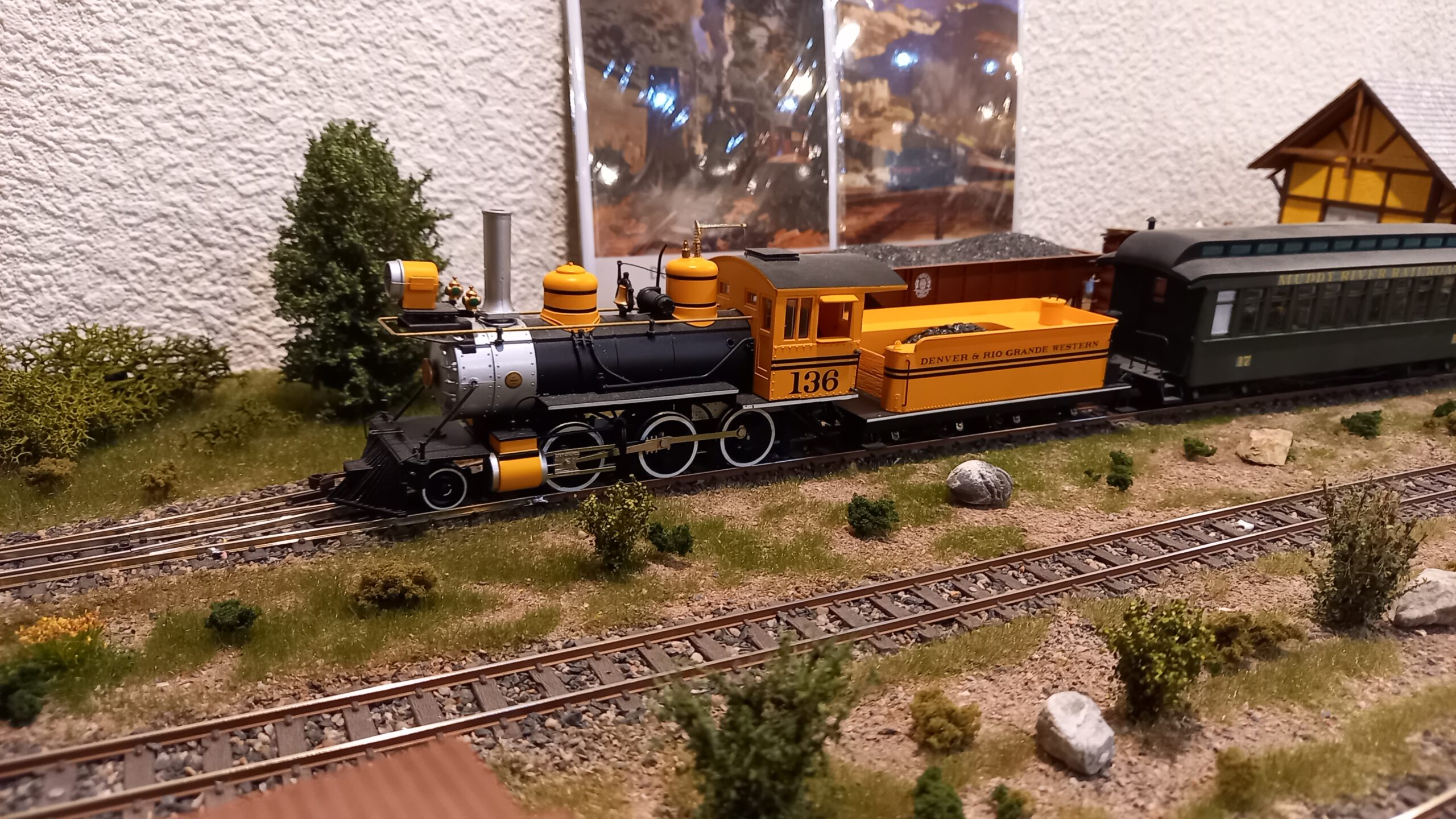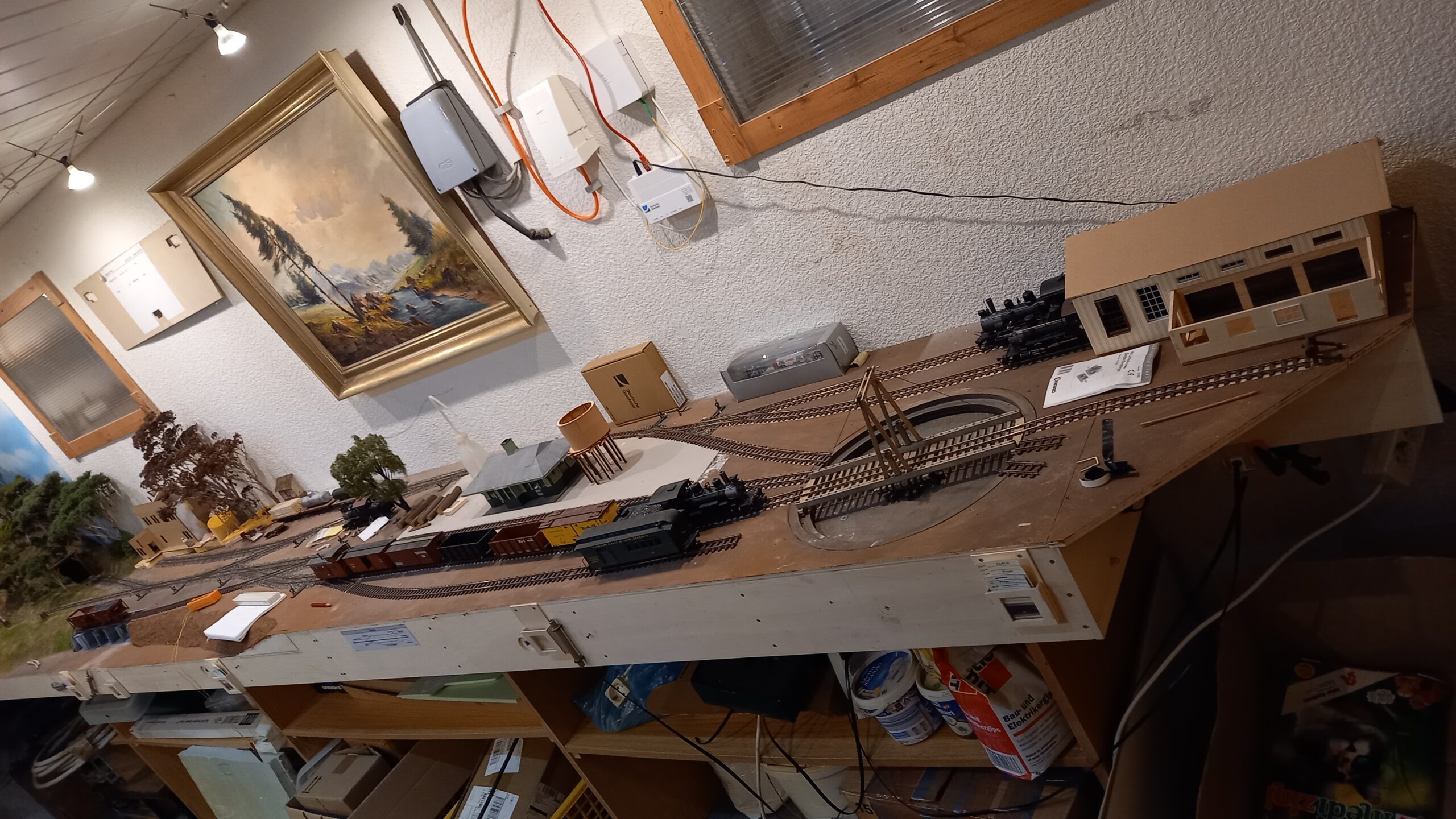 Die Züge aus dem Schattenbahnhof kommen hieran und müssen Kopf machen. Dies ist auch eine Gelegenheit für Lokwechsel- Im Spielbetrieb hatten wir häufig die kleine Porter hier als „Yard Goat“ eingesetzt, die das Rangieren und Zustellen der Wagen vor Ort übernimmt, damit die Streckenloks zeitnah wieder mit ihren Zügen weiter fahren konnten.