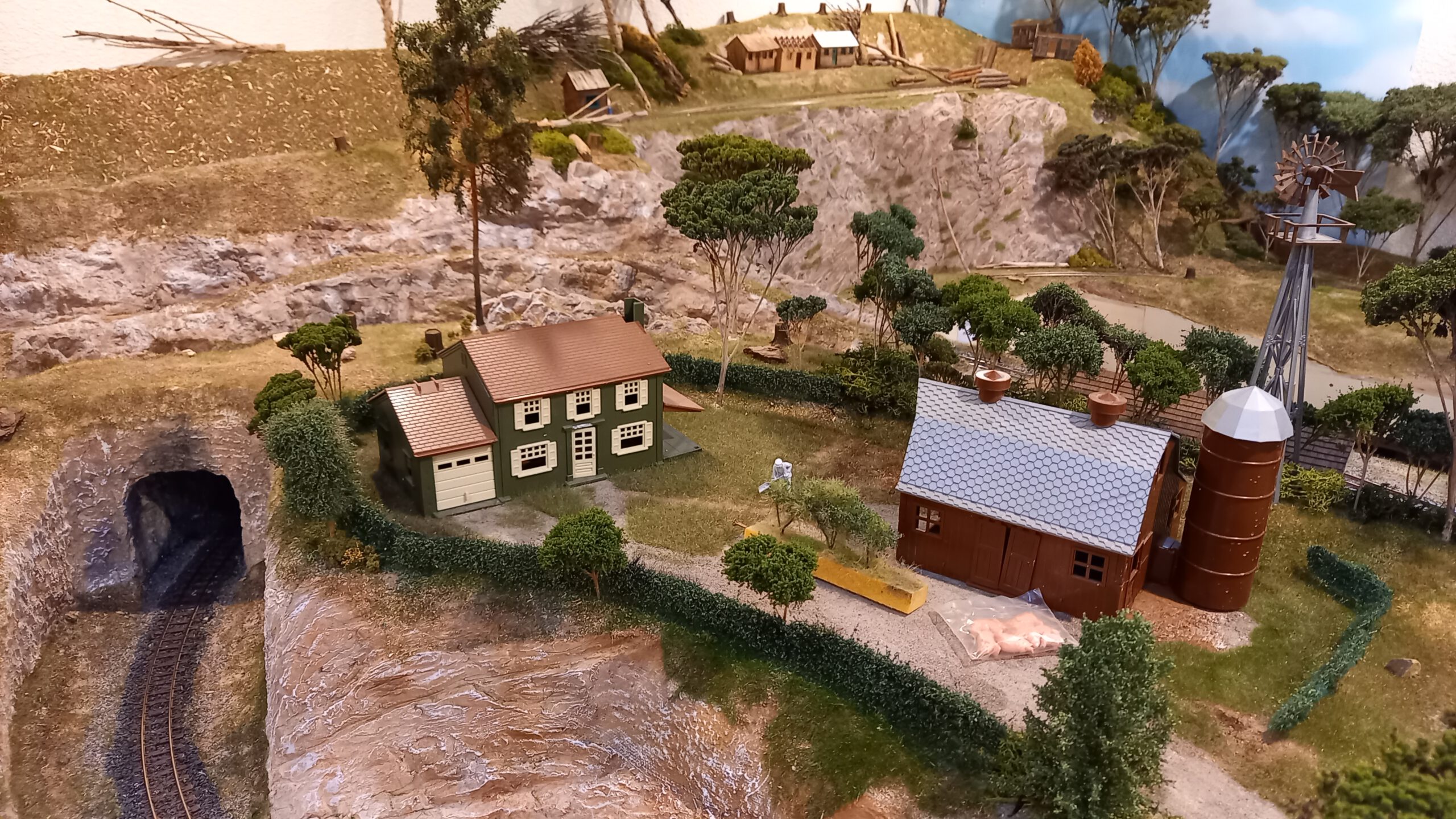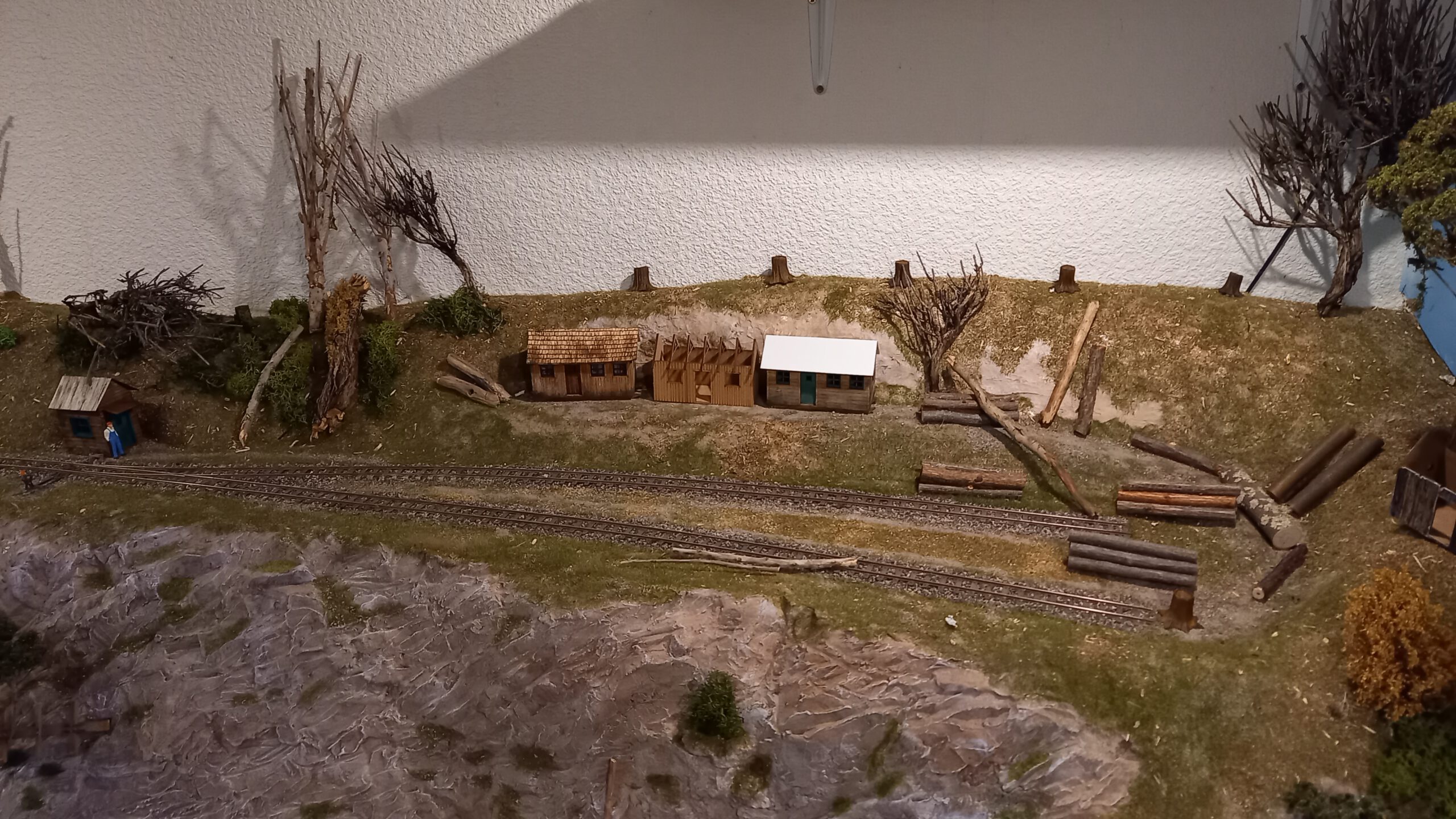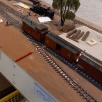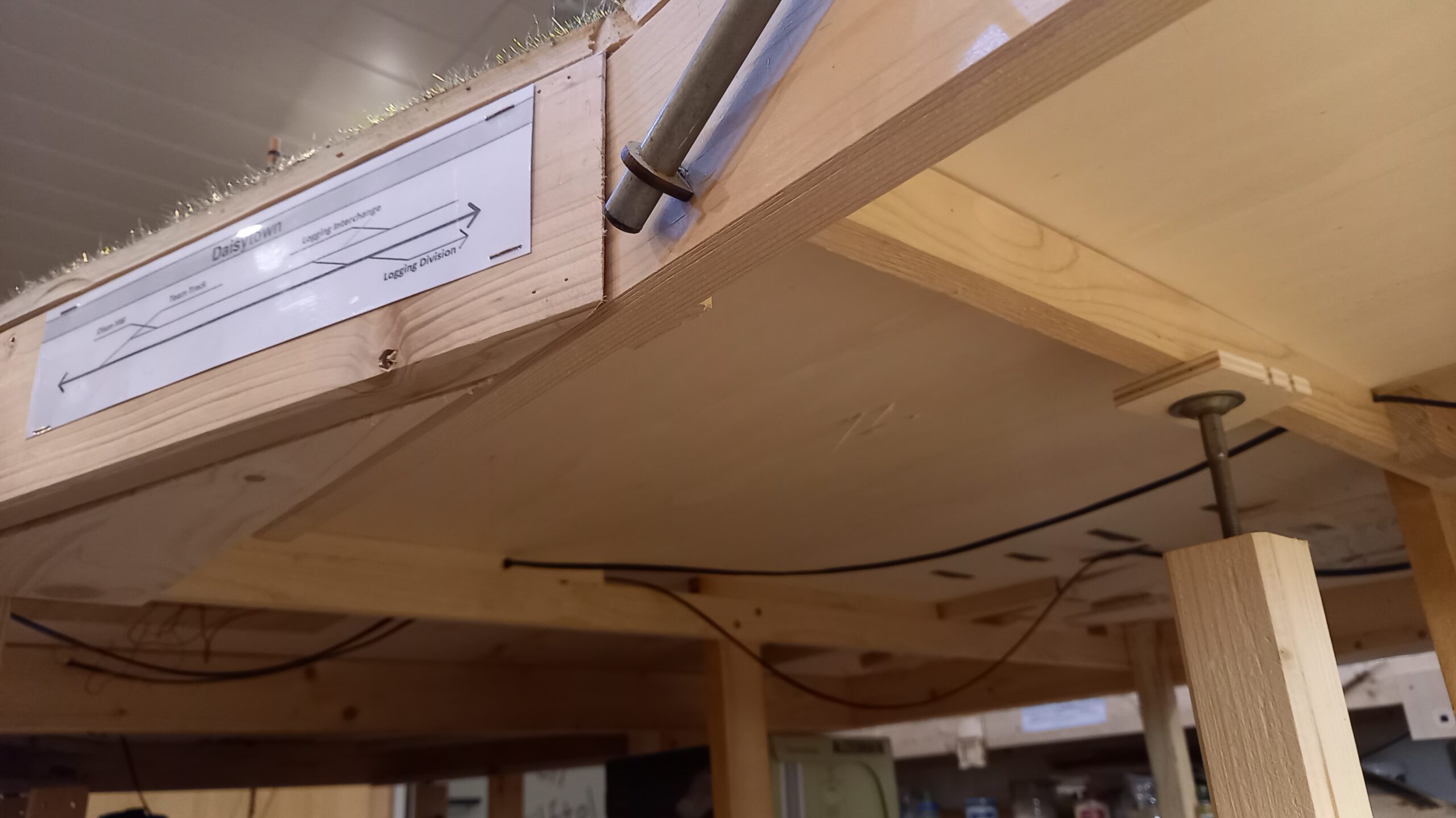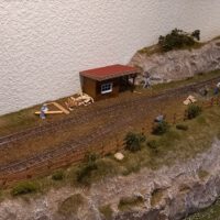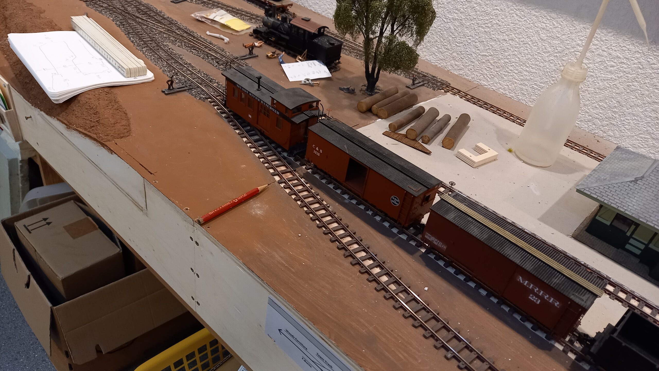 Hinweis – Daisytown ist auf zwei großen Segmentkästen aufgebaut und läßt sich ohne weitere zerlezen. Siehe die Trennstellen auf den letzten Bildern am roten Bleistift. Hinzu kommt noch die abgeschrägte Erweiterung um mehr Platz für den Lokschuppen zu haben.