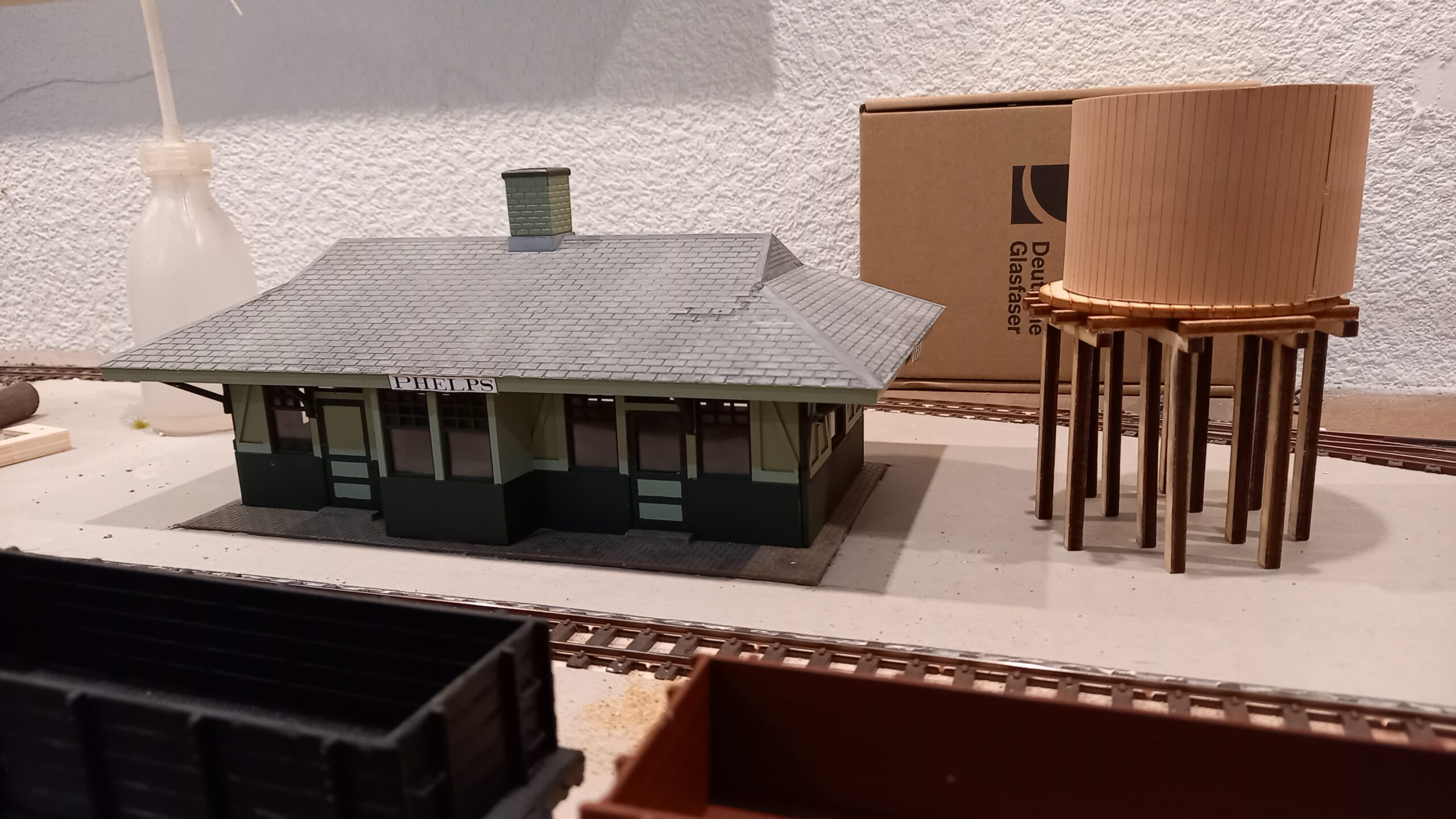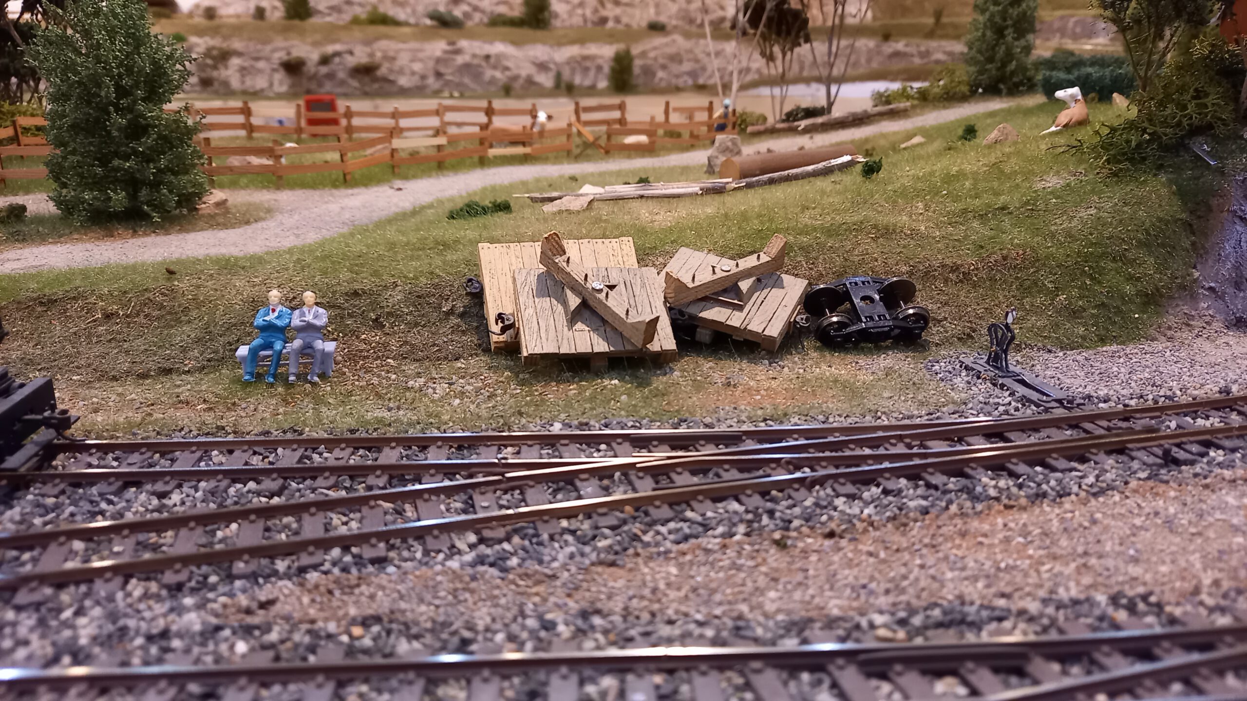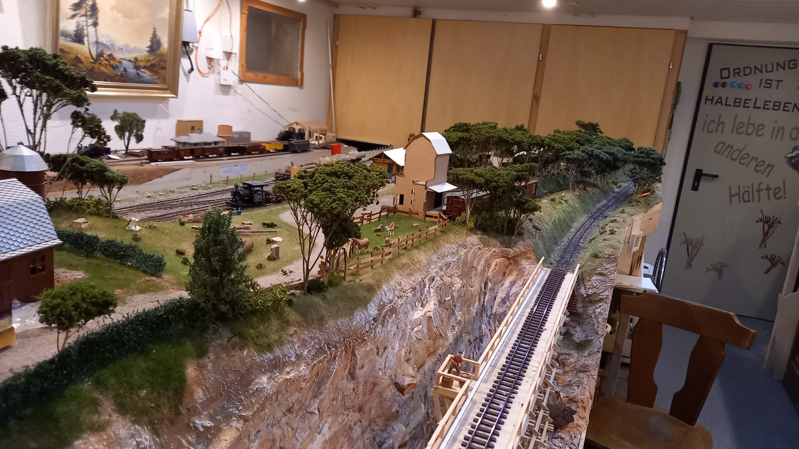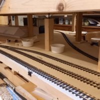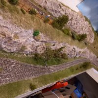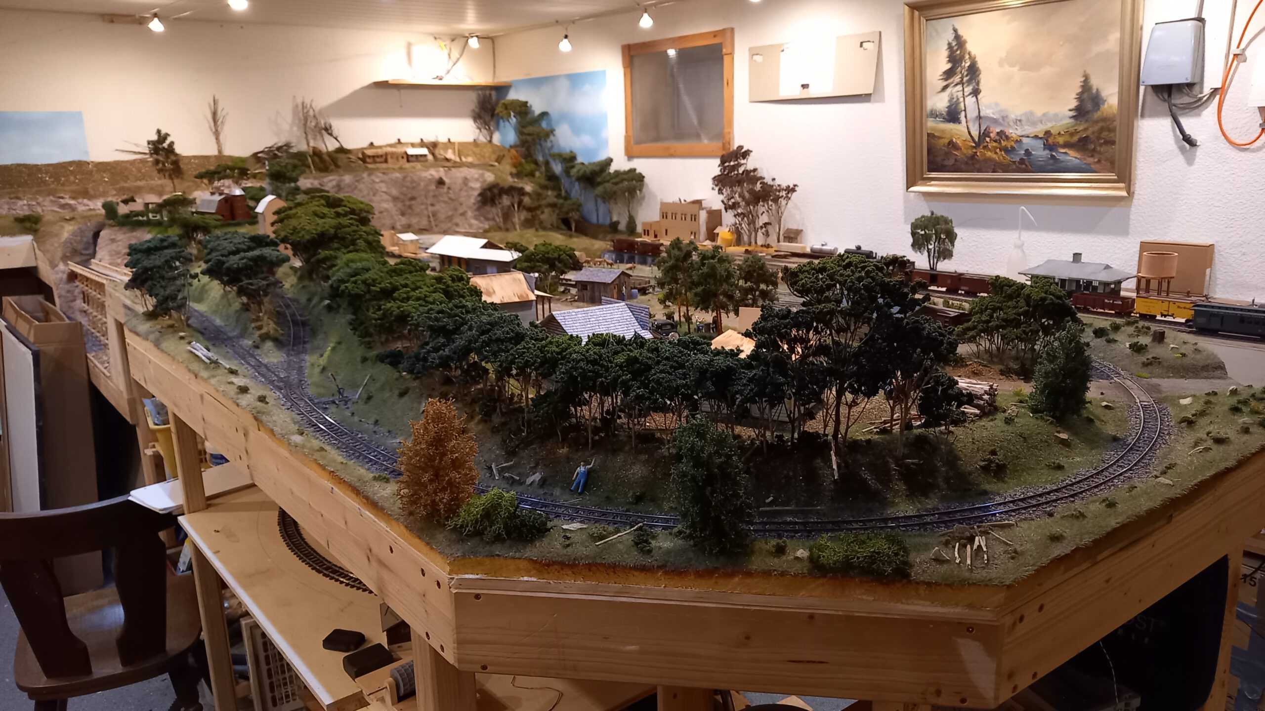 Hinweis – Daisytown ist auf zwei großen Segmentkästen aufgebaut und läßt sich ohne weitere zerlezen. Siehe die Trennstellen auf den letzten Bildern am roten Bleistift. Hinzu kommt noch die abgeschrägte Erweiterung um mehr Platz für den Lokschuppen zu haben.