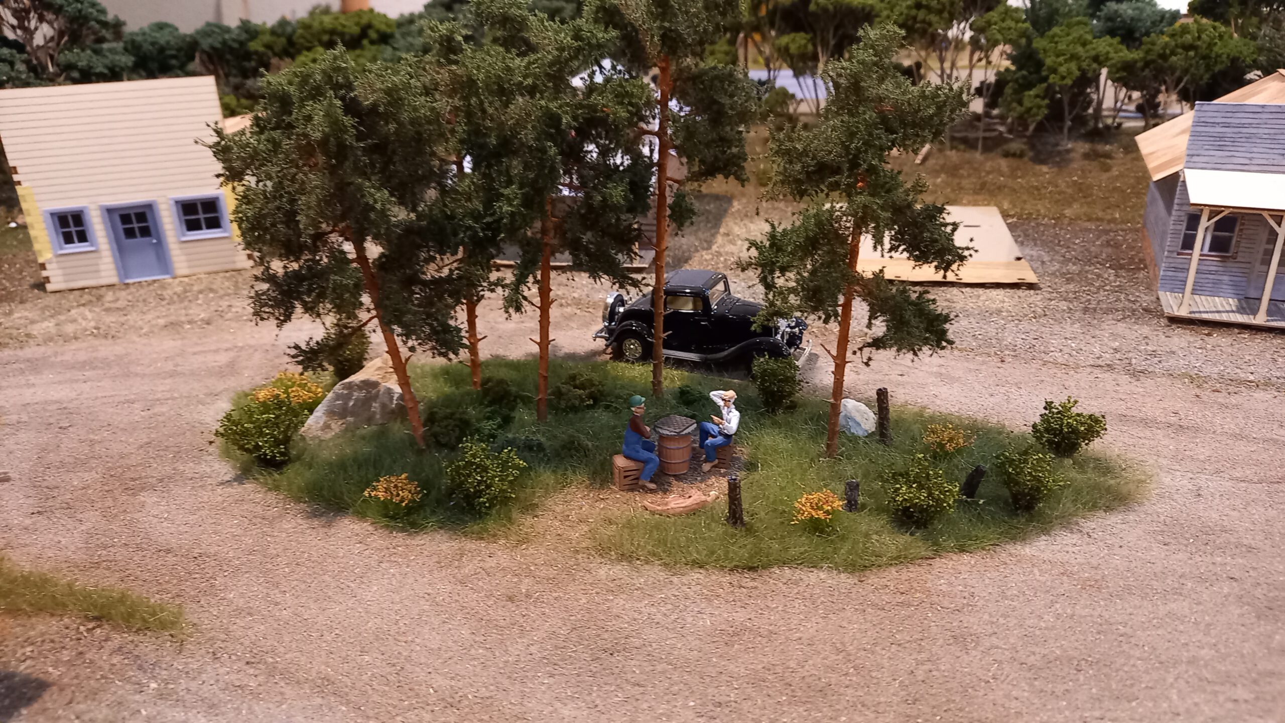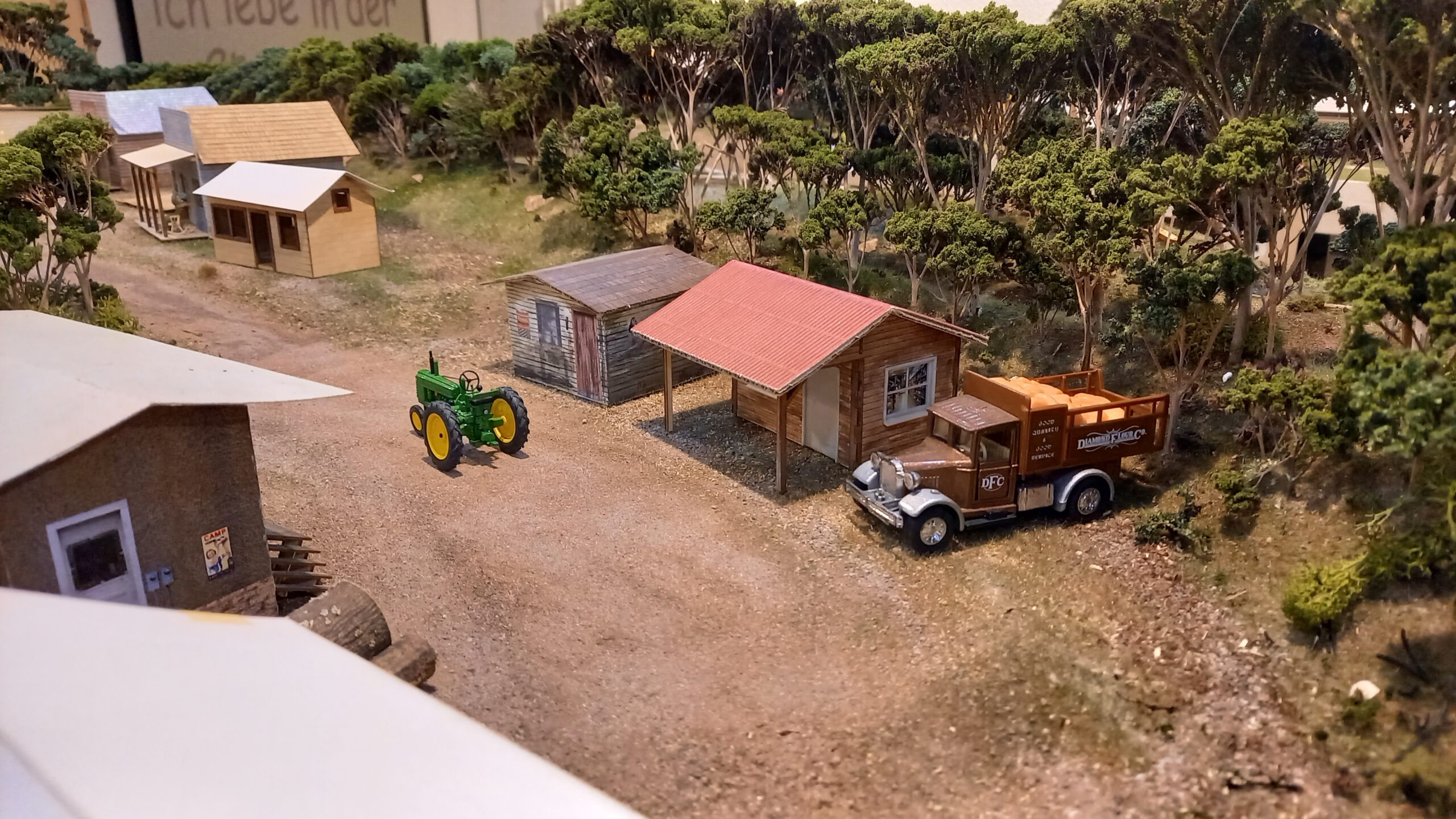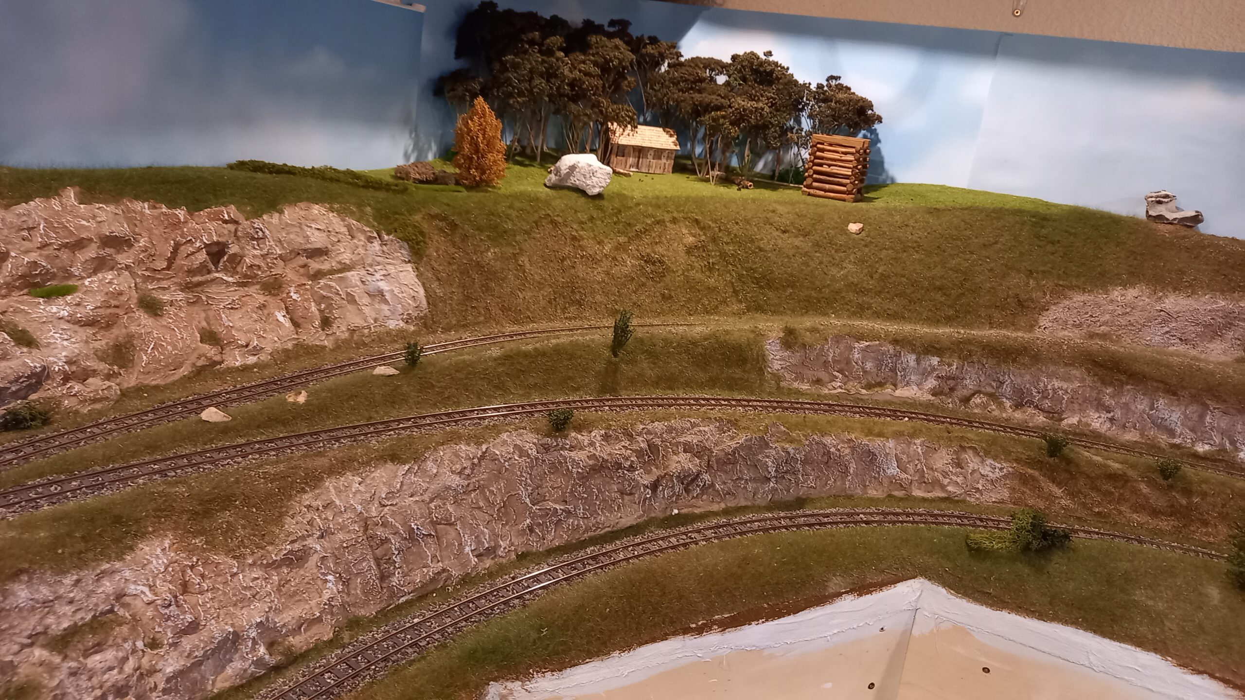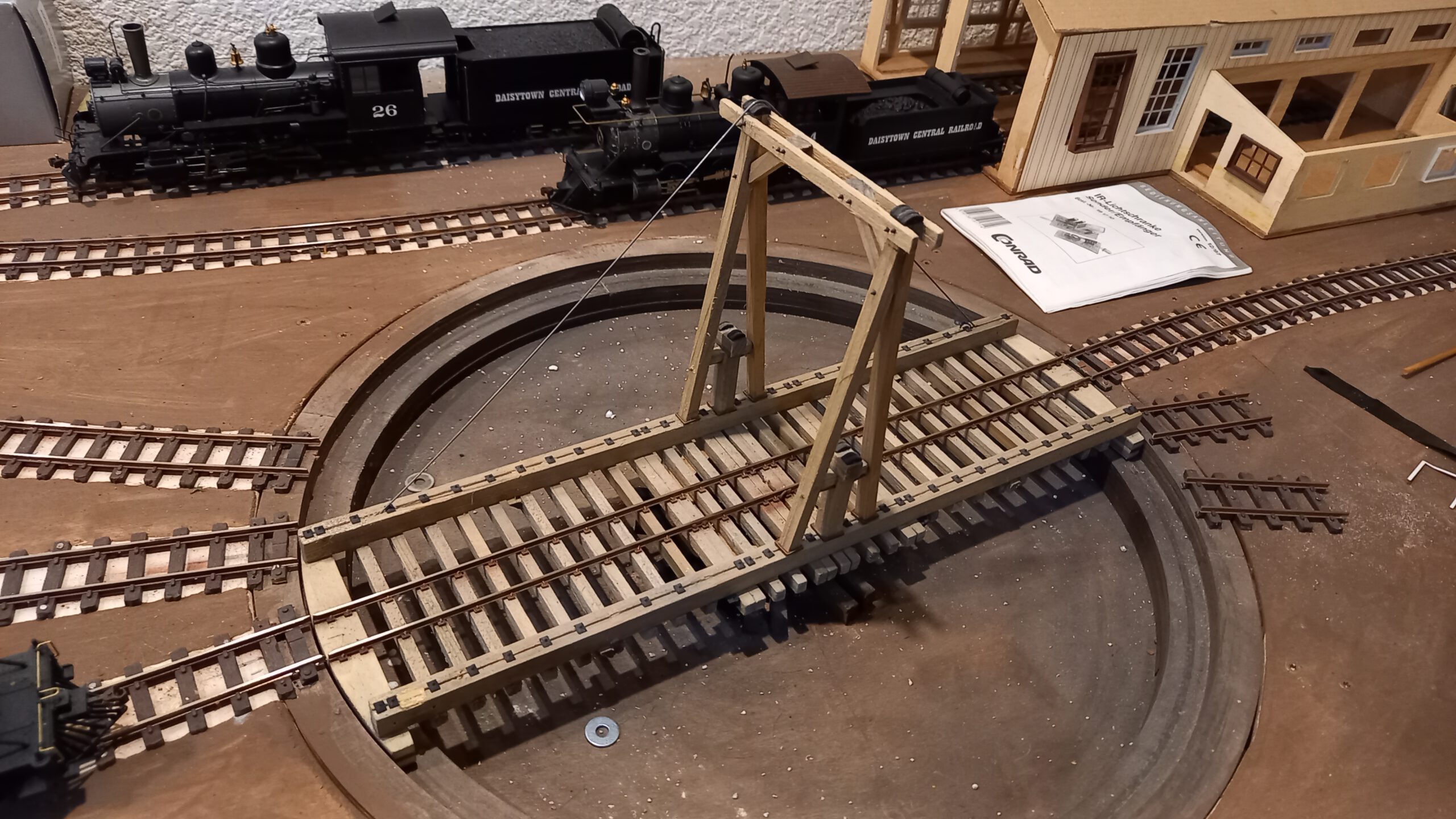 Hinweis – Daisytown ist auf zwei großen Segmentkästen aufgebaut und läßt sich ohne weitere zerlezen. Siehe die Trennstellen auf den letzten Bildern am roten Bleistift. Hinzu kommt noch die abgeschrägte Erweiterung um mehr Platz für den Lokschuppen zu haben.
