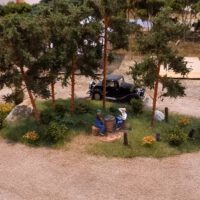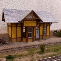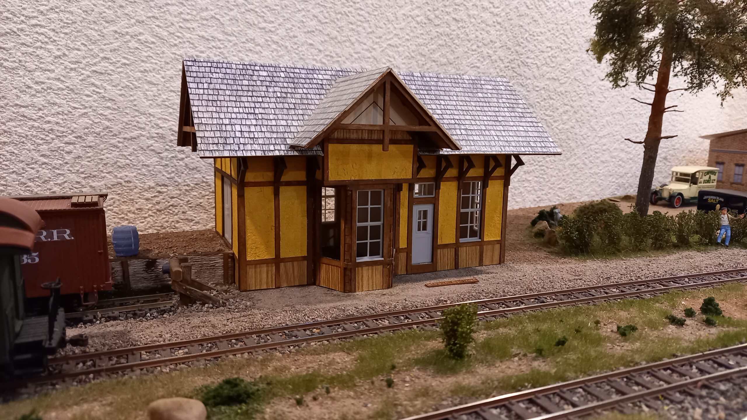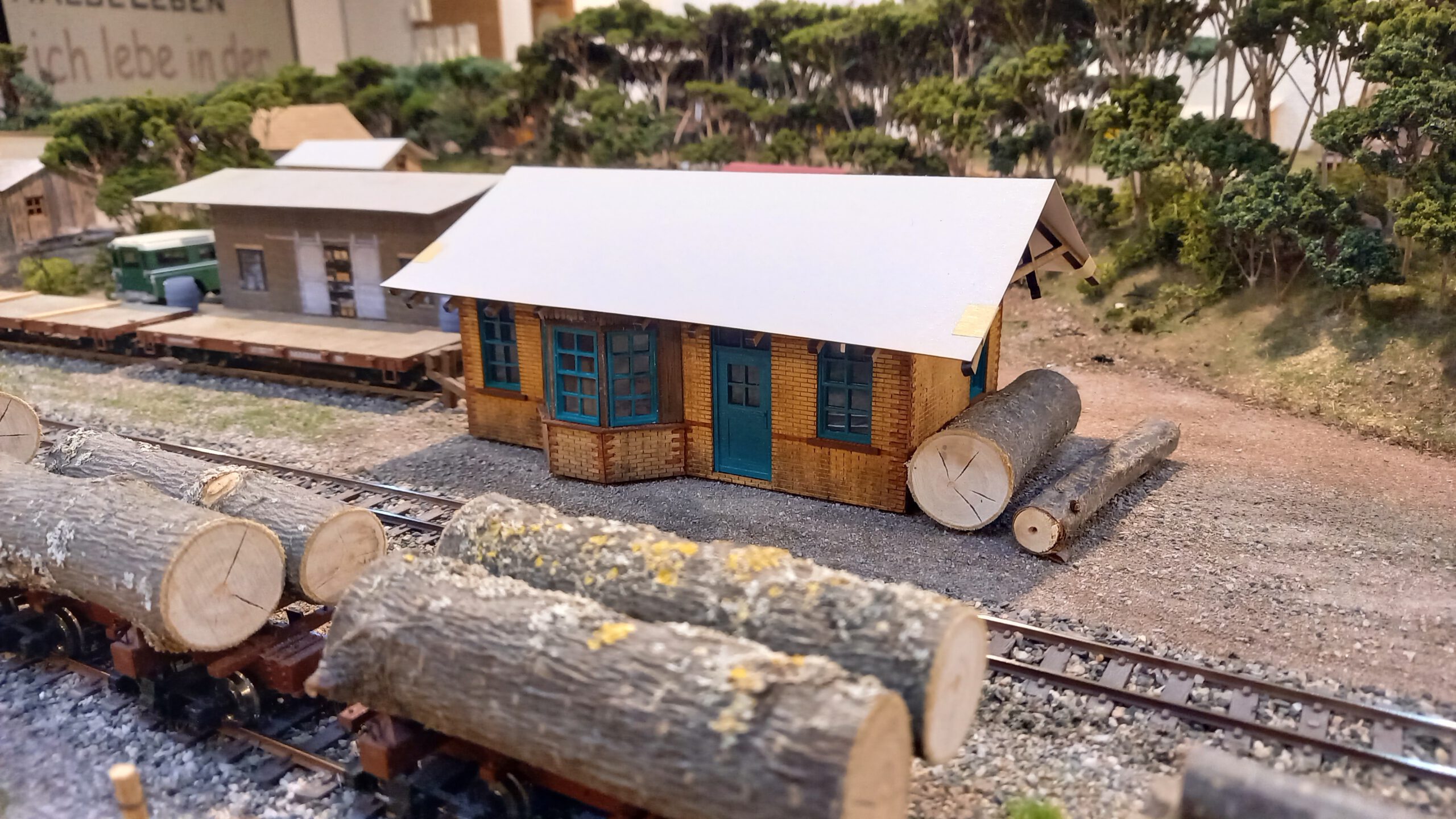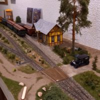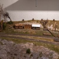 Spitzkehrenbahnhof mit Freiladegleis, große Lokbehandlung (Drehscheibe, Lokschuppen….) Anschluß „Möbelfabrik“, Anschluß „Kohlenhändler“, Abstellgleis für Güterwagen.