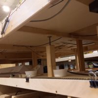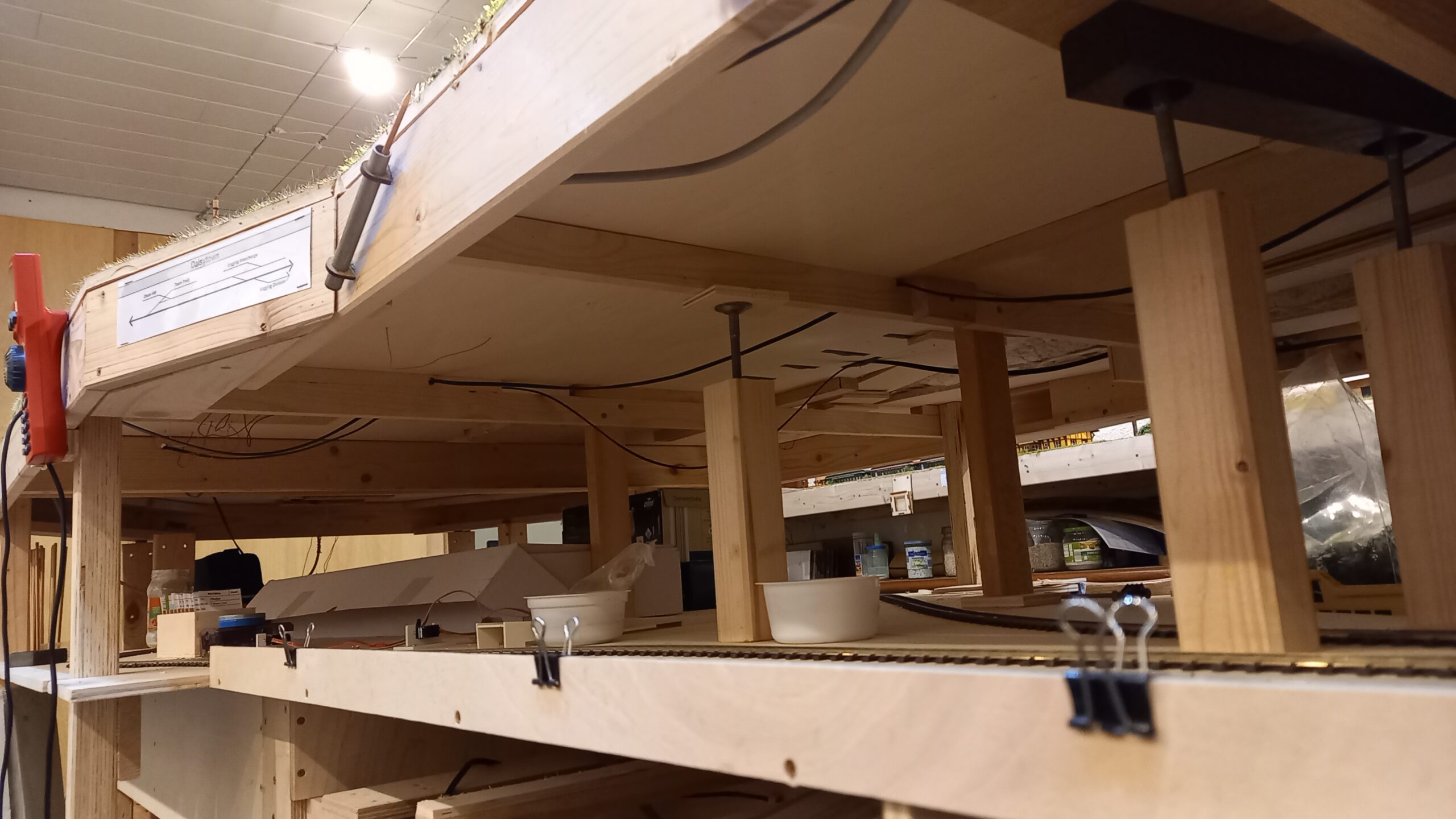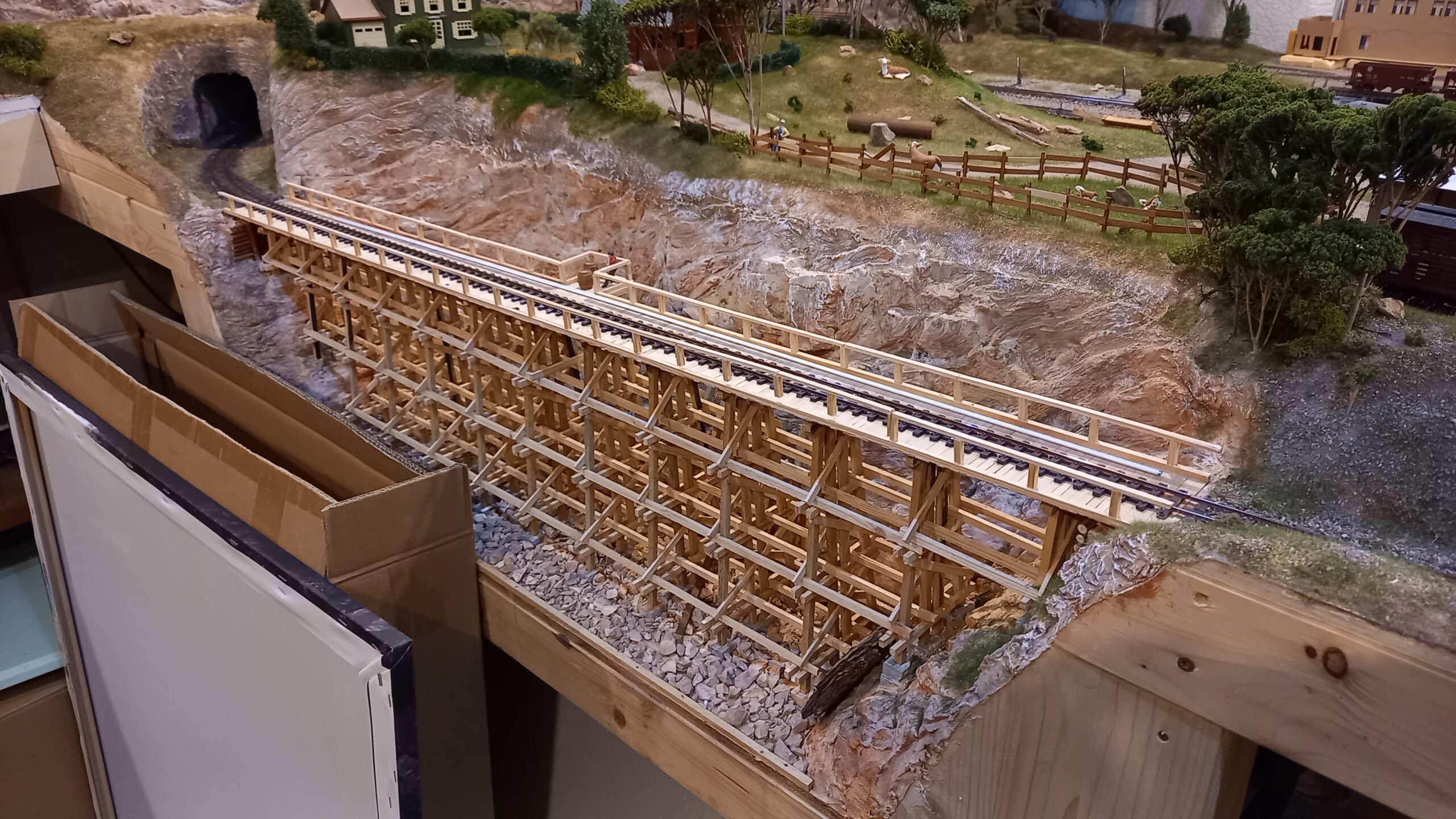 Viele Bereiche wie z.B. Daisytown und Hogan Springs sind auf Sperrholzplatten aufgebaut. Für den Transport könnten man evtl. mit Latten und Brettern eine temporäre Aussteifung vornehmen. Manche bereiche der Strecke sind in offener Rahmenbauweise mit Dämmstoffplatten ausgeführt.