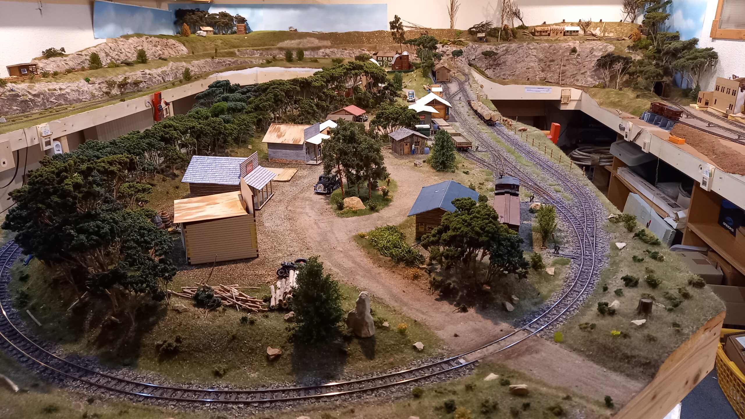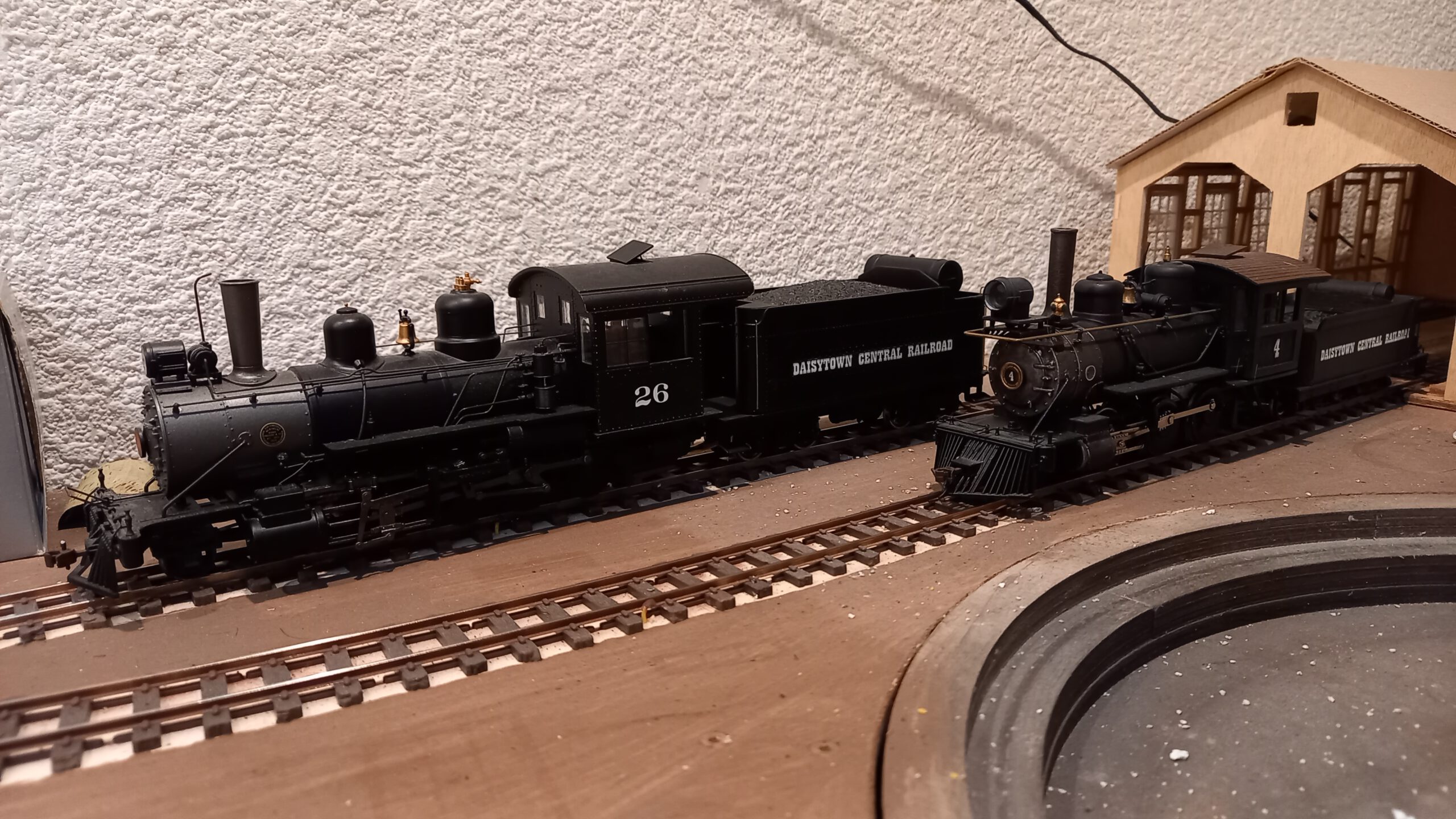 die Waldbahnstrecke beginnt in Daisytown. Hier befindet sich der Lokschuppen für die Shay, sowie die spärlichen Gleisanlagen der eigenständigen Waldbahn. Von hier führt die Strecke über eine Spitzkehre hinauf zum Verladecamp.