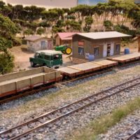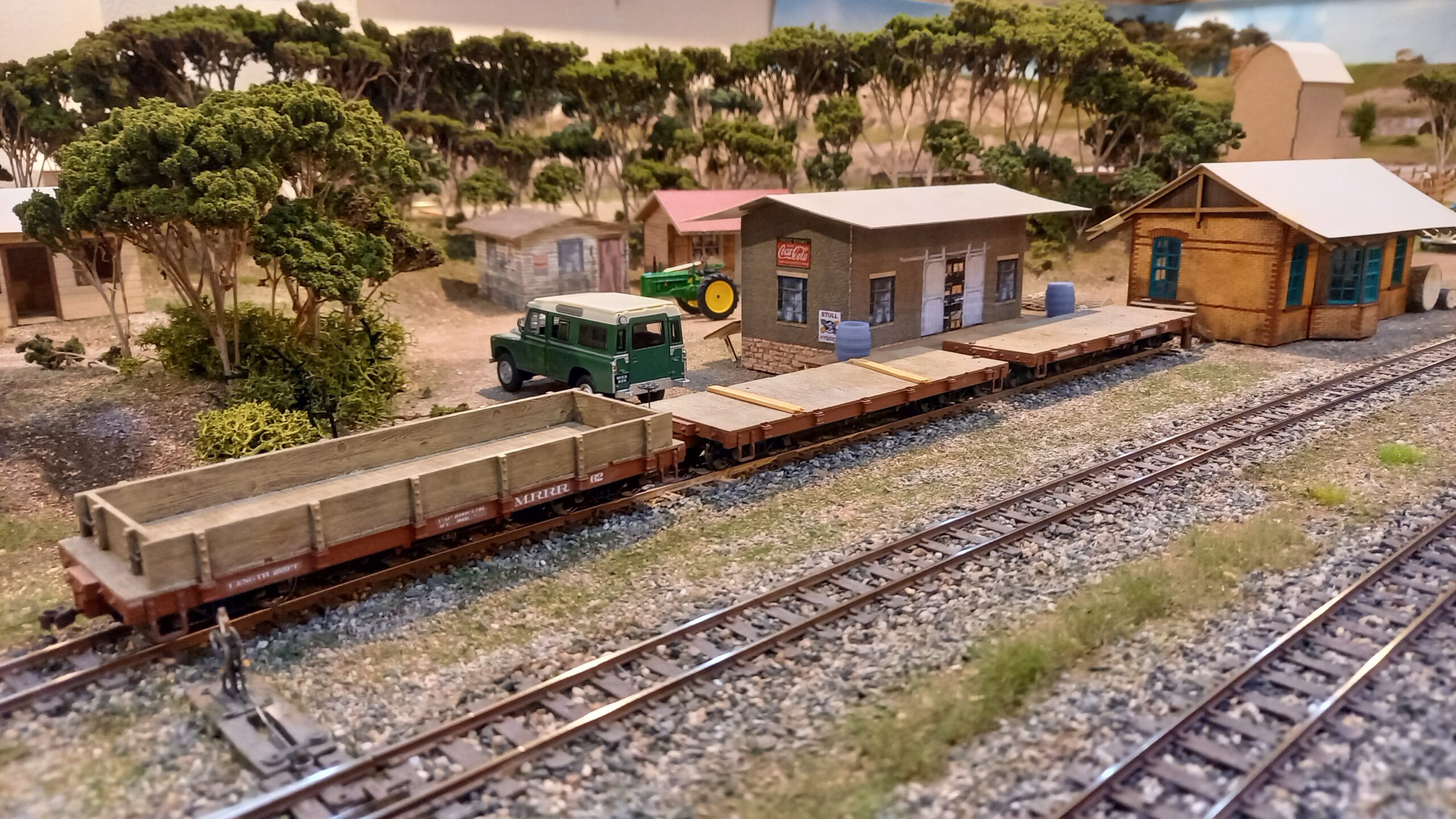 Güterschuppen mit Freiladegleis, Anschluß „Maschinenteilehandel“, Anschluß „Farmers Coop“ (Getreide, Vieh…)