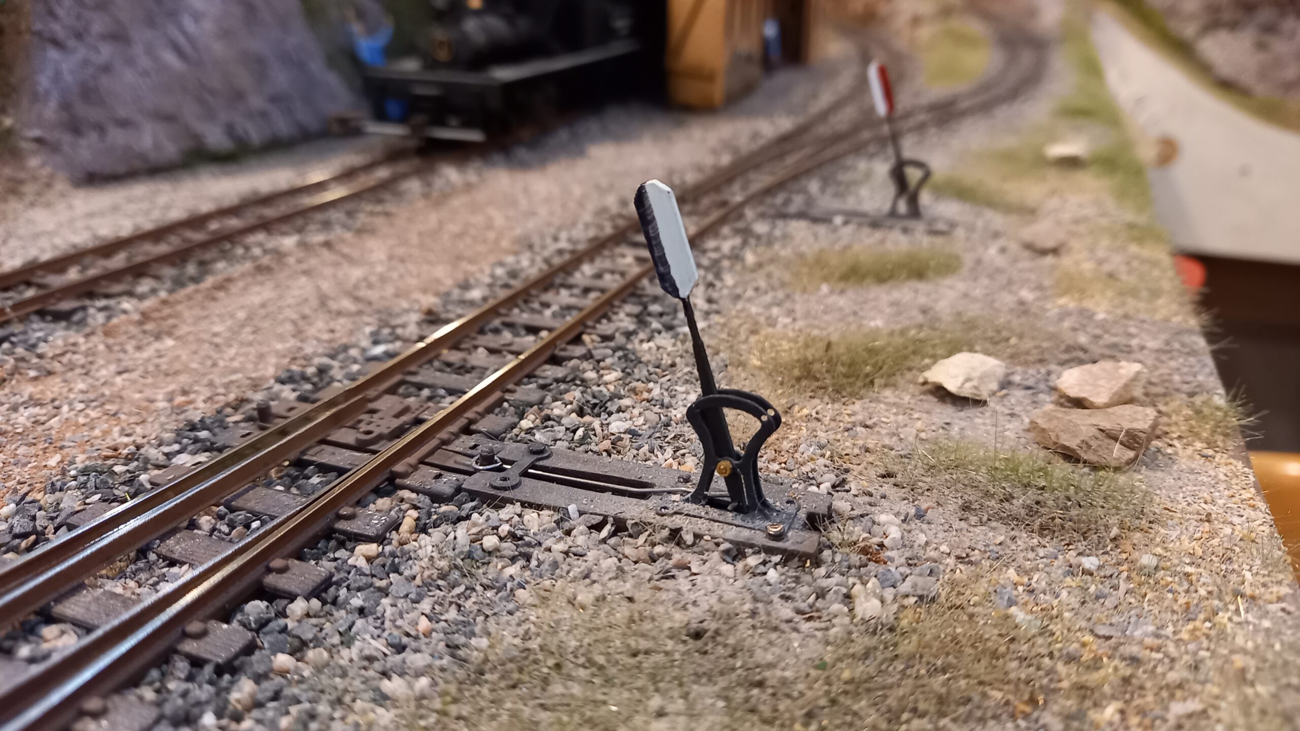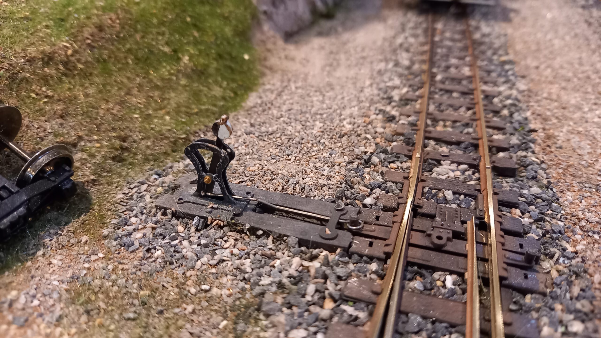 Bis auf wenige Ausnahmen (Waldbahnstrecke und Schattenbahnhof) werden sämtliche Weichen vor Ort gestellt mittels maßstäblicher, US-Weichenstellhebel. Die hohen Harp-Switchstands sind für Streckengleise vorgesehen, im Bahnhofsfeld stehen die kleineren Varianten. Die Stellhebel betätigen nicht nur die Weiche, sondern zeitgleich auch die Herzstückpolarisierung.