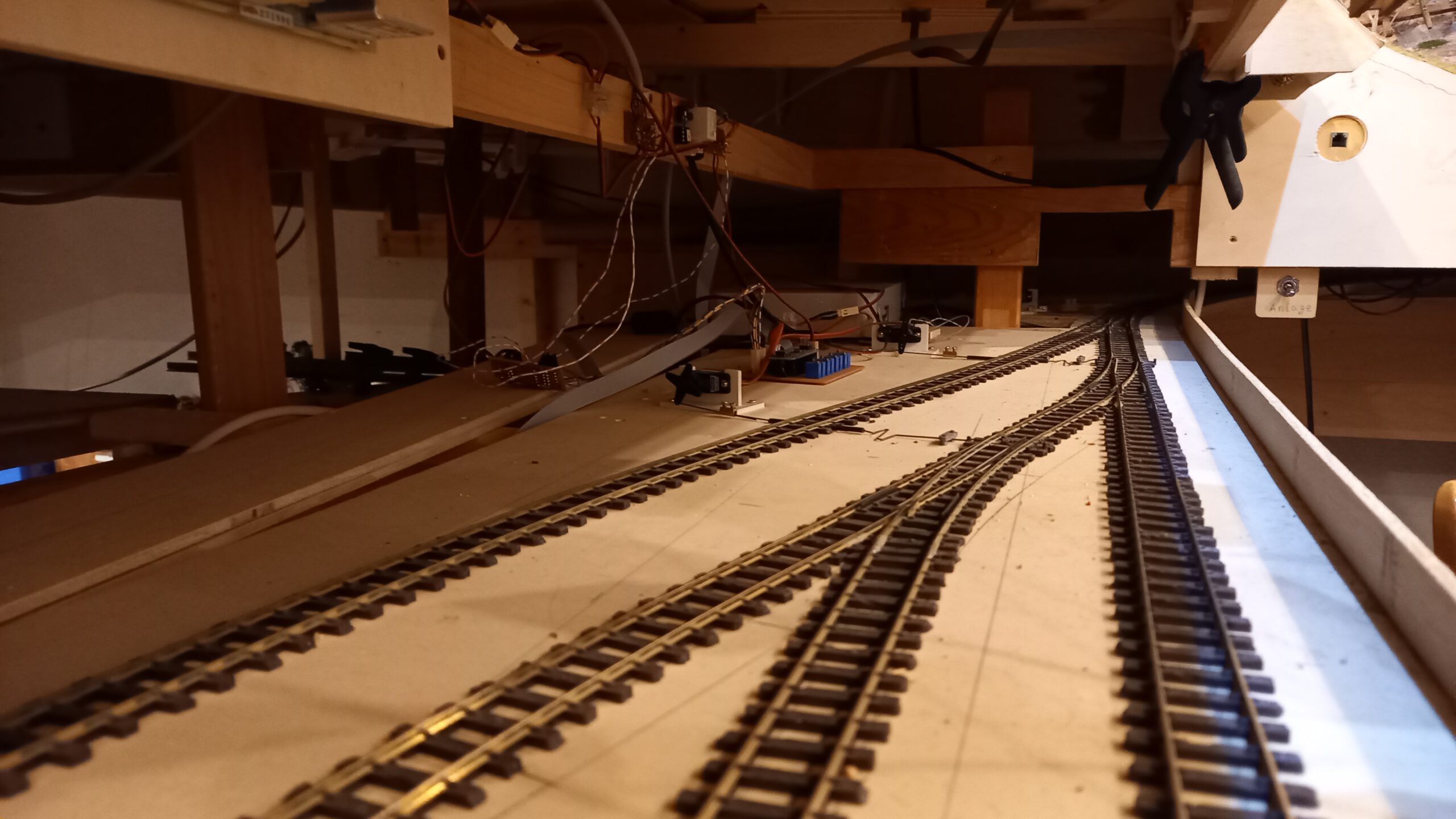 drei Gleise mit großer Wendeschleife – Alle Weichen mit Servos gestellt über ein kleines Stellpult